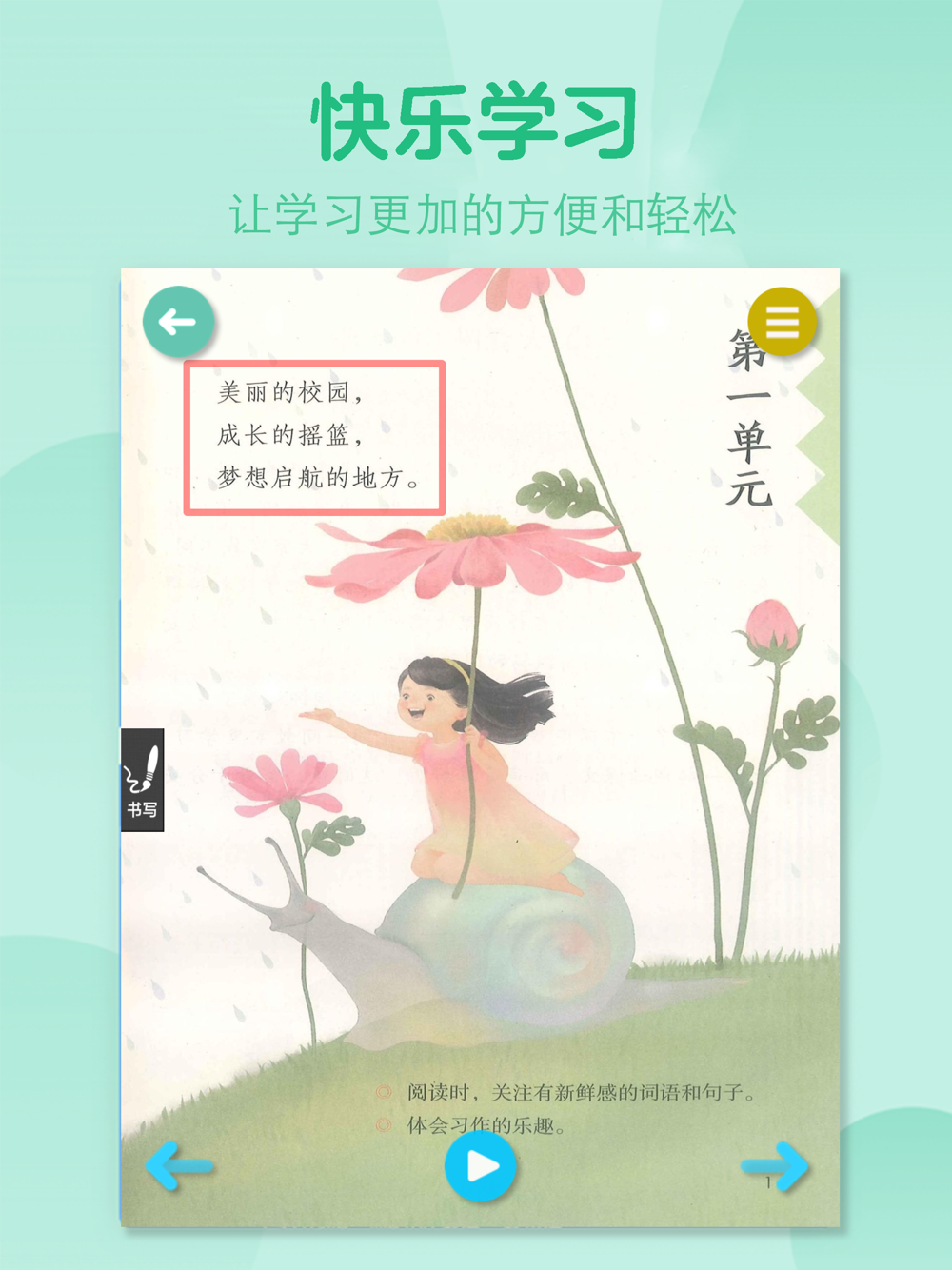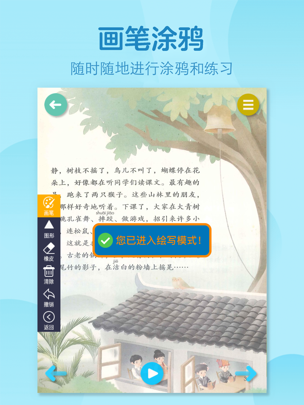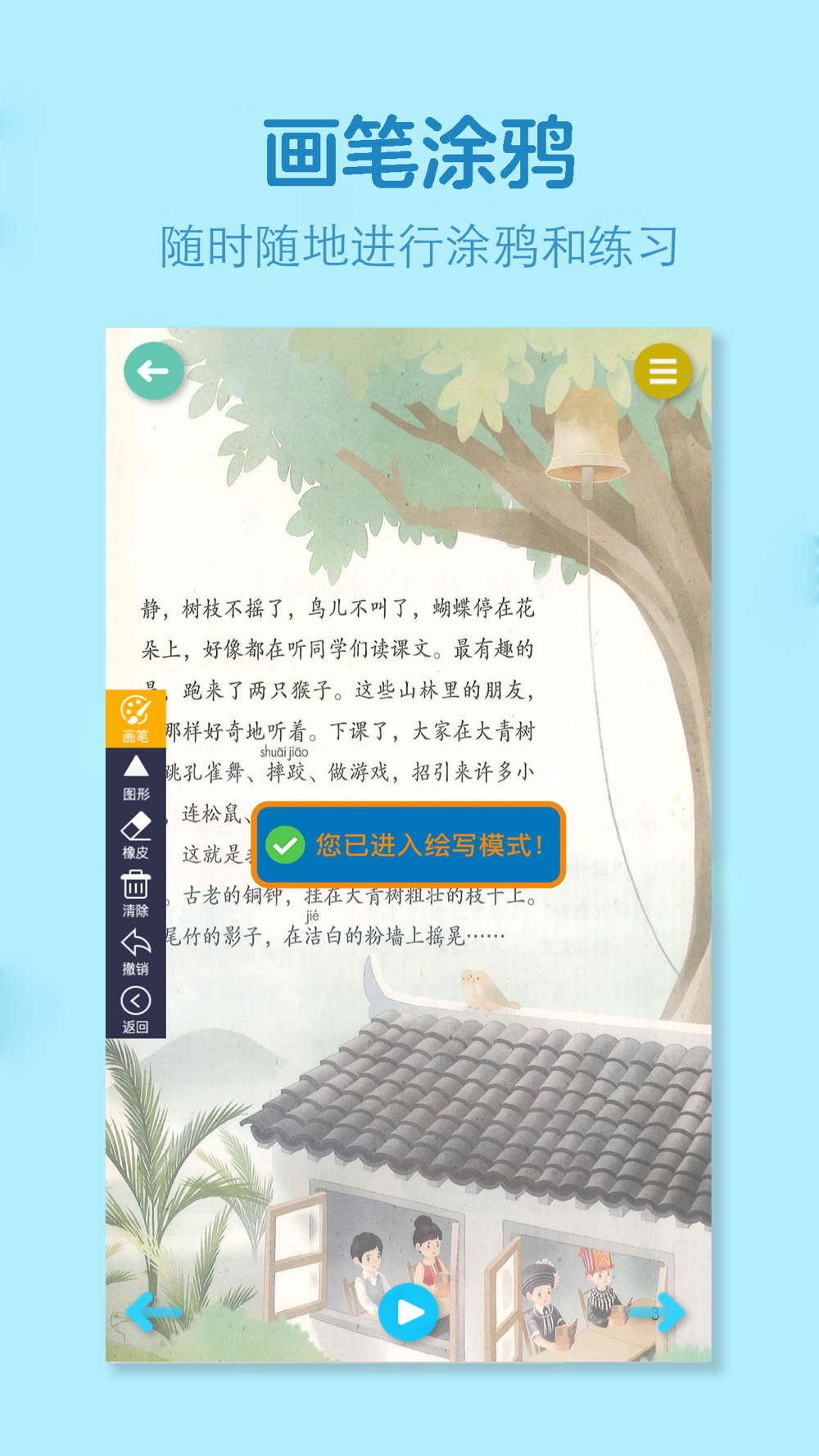 【2】画笔功能,全屏涂鸦让学习更加的有趣让学习更加高效率。完全同步最新发行教材,绝无缺漏页现象。