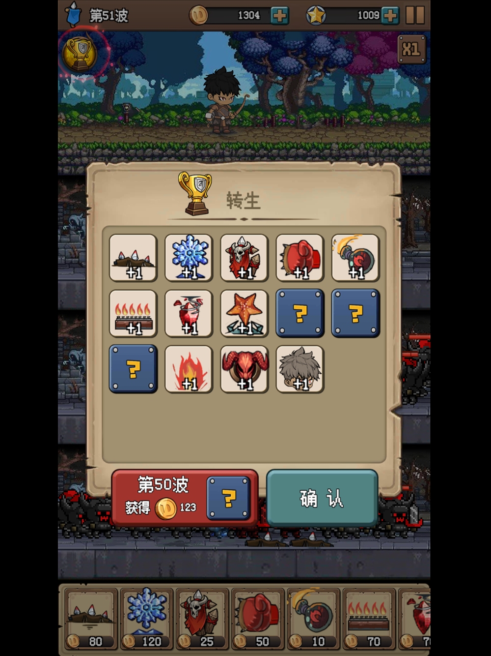 有时候你要选择以退为进,是在打不动了可以选择重生(返回第一关并获得一个天赋及部分金币)。偷偷告诉你,在失败后可以试试重新开始哦。