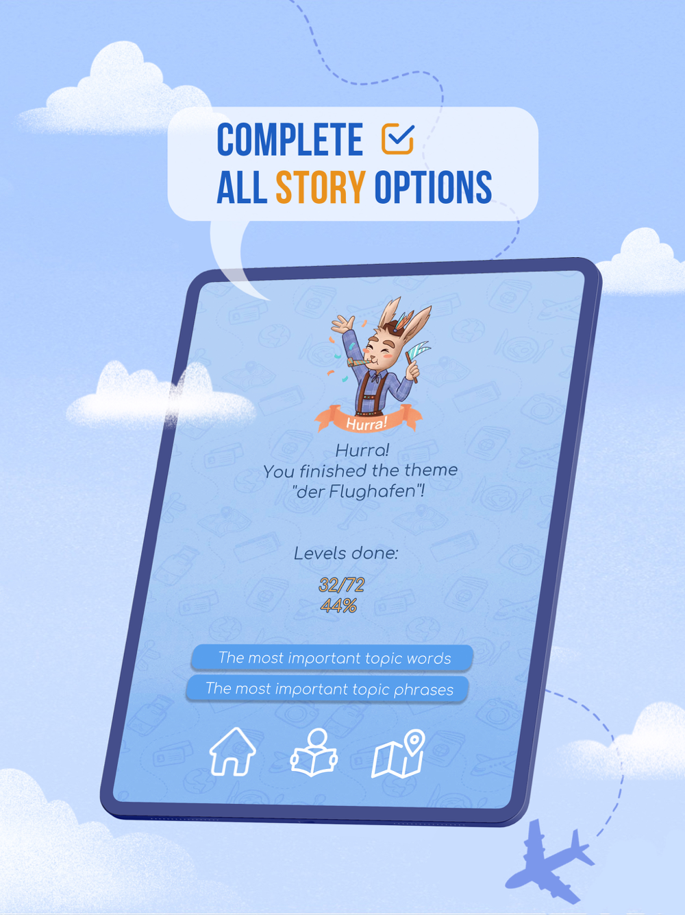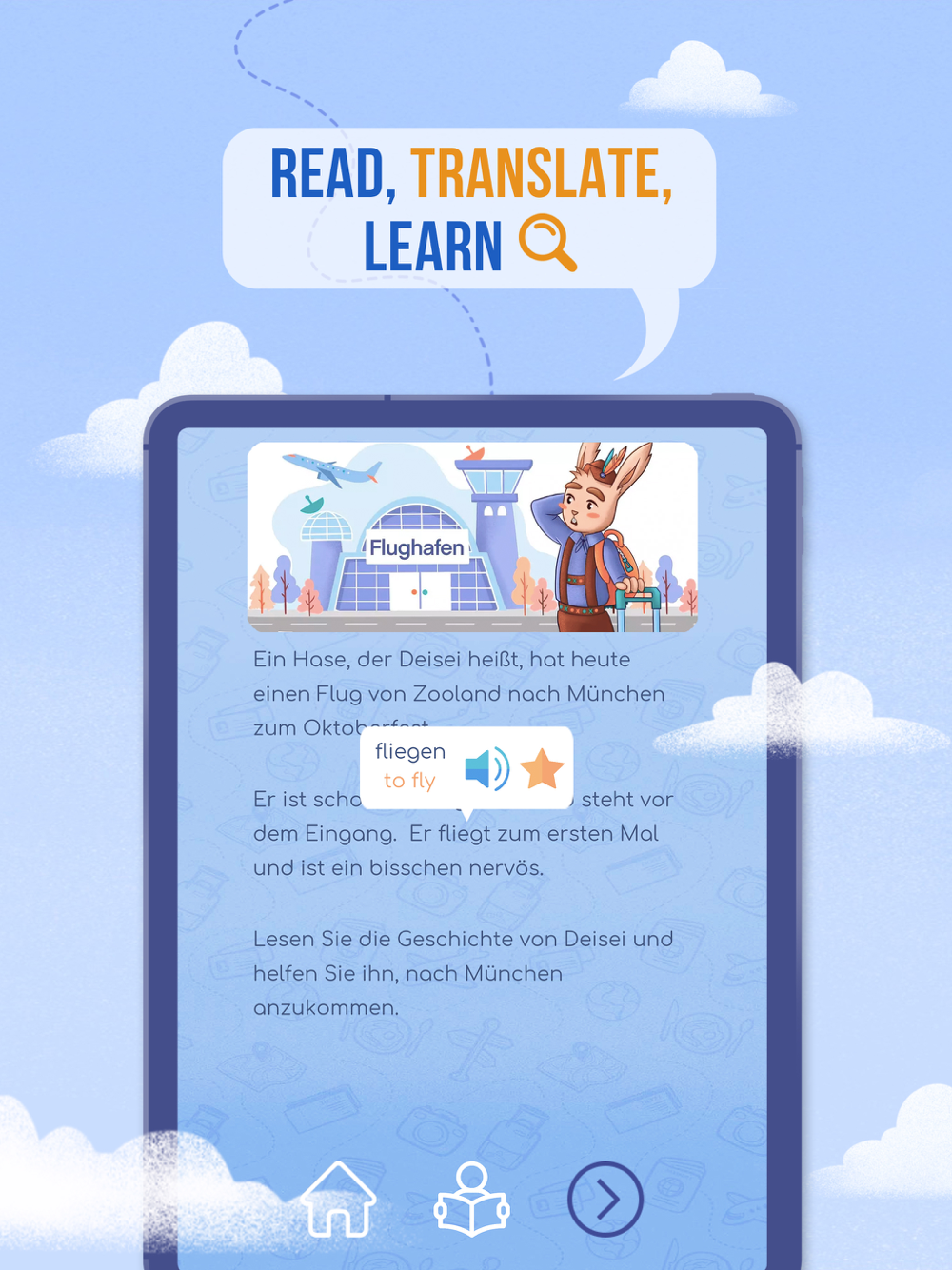 An educational game of German for all ages. You will be able to go through various life situations with Deisei. You can also study grammar and words, save them in a dictionary, and do exercises for memorization.