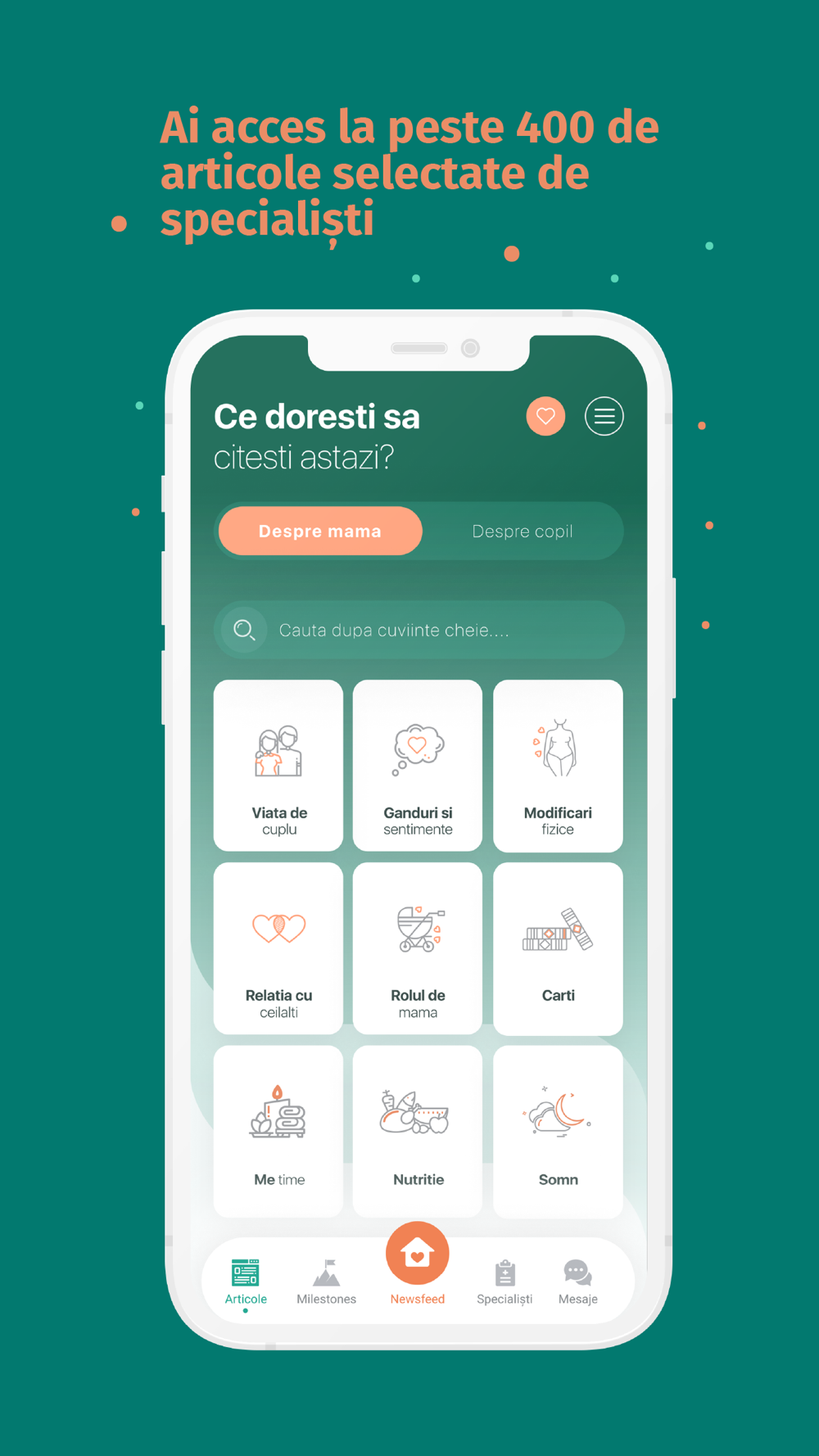 • Verifică milestone-urile de dezvoltare (0-36 luni)