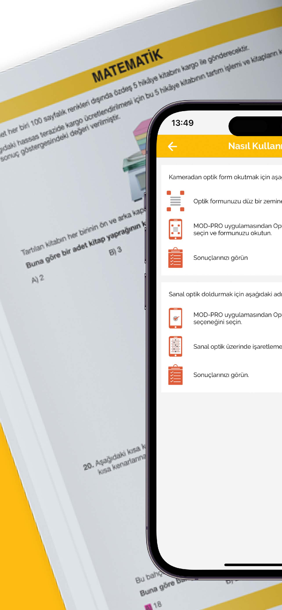 Optik forma sahip olan kitaplarımız için mobil optik cevaplarını size sunan bir uygulamadır. Öğrencilerimiz bu uygulamayı dilerseniz telefon kameranıza okutarak, dilerseniz üzerinde bulunan kodları uygulamaya işleyerek o testin sonucuna ulaşabilirler. Öğrencilerimiz sonucunu görmek istedikleri testte ilçe - il - Türkiye Geneli sıralamalarına ulaşabilirler.