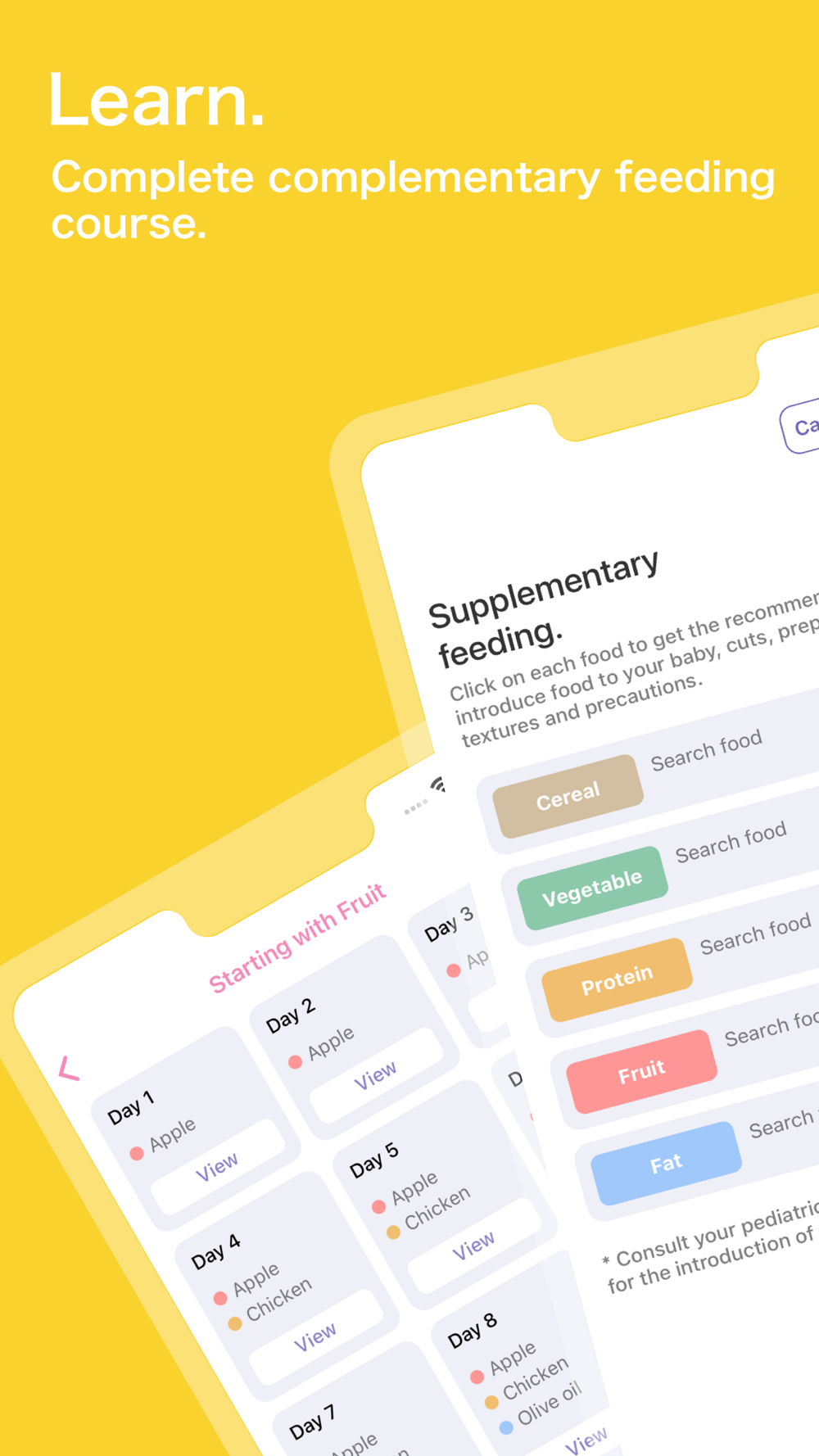 This application was designed to help parents in the process of introducing food to babies older than 6 months.