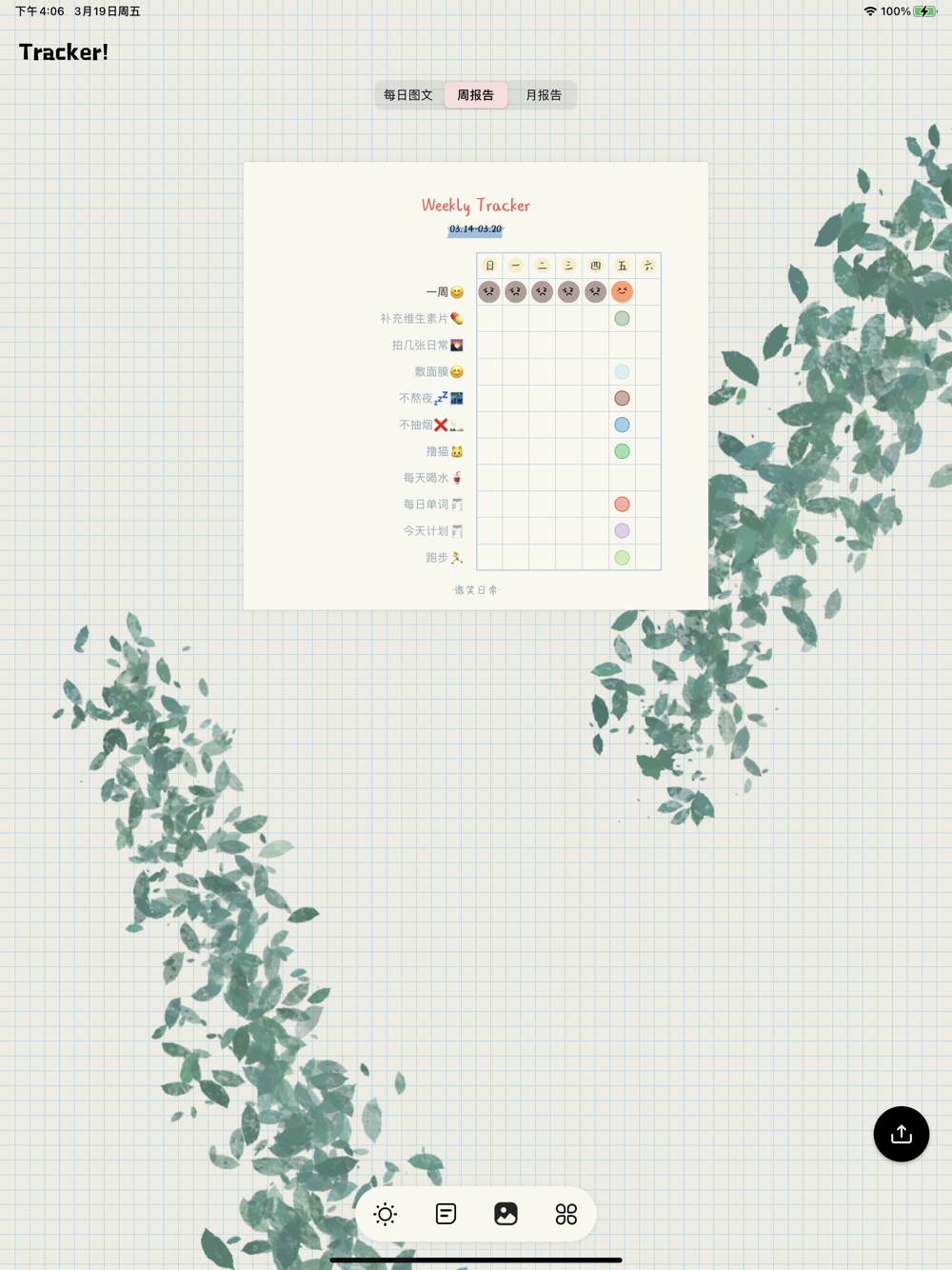 When you complete more than 60 percent of your daily habits, you get a smiley face, a nice card that you can click on and write your thoughts on the back of your life, and a cute Tracker to save or share your smile with your friends.