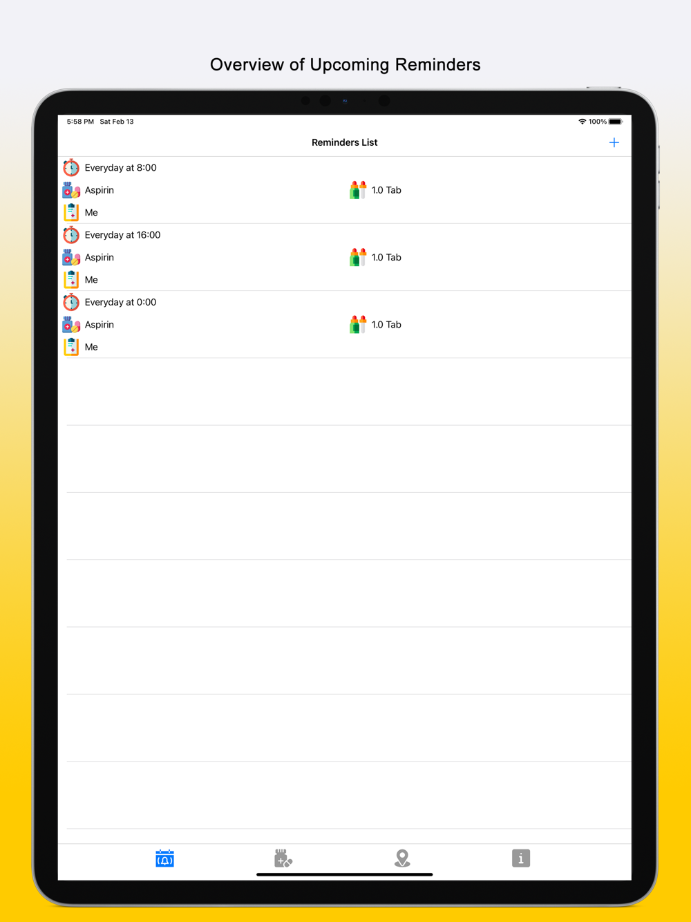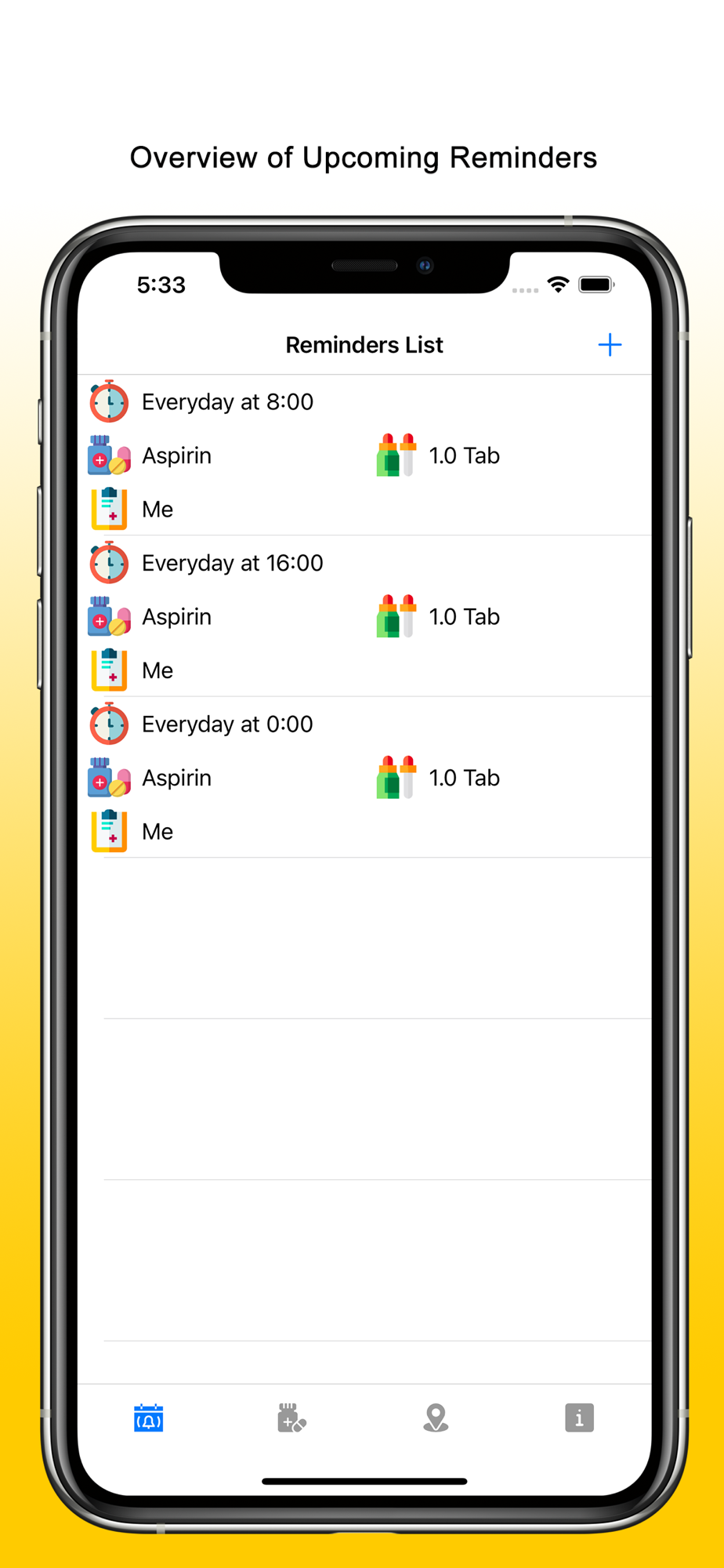 Just define which medicine, when and how much it should be taken and leave the rest to MyMedicineTime to remind you warmly!