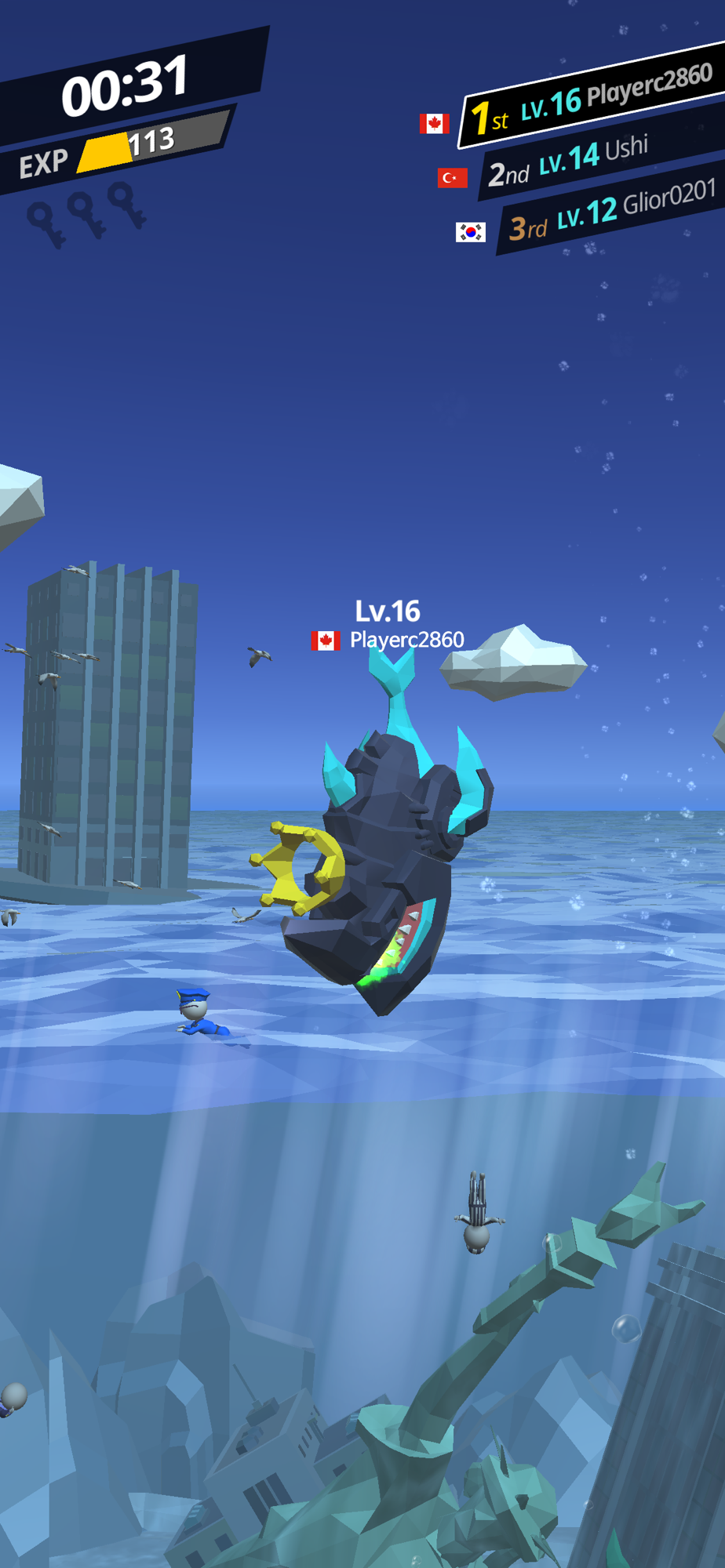 - Exciting growth: wil battles against enemies and grow your shark.