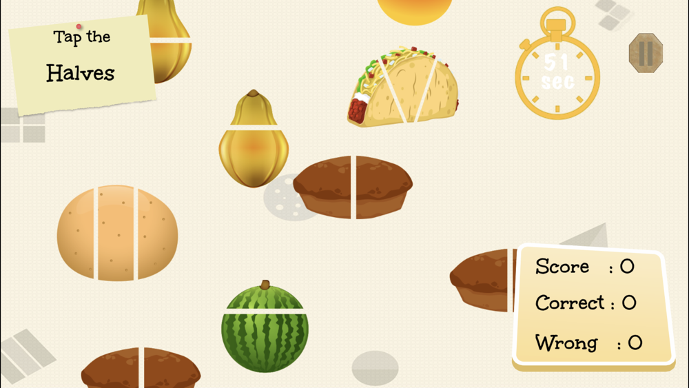 * Fractions - Using objects like a pizza, a watermelon, understand that a fraction is a few parts out of a whole.