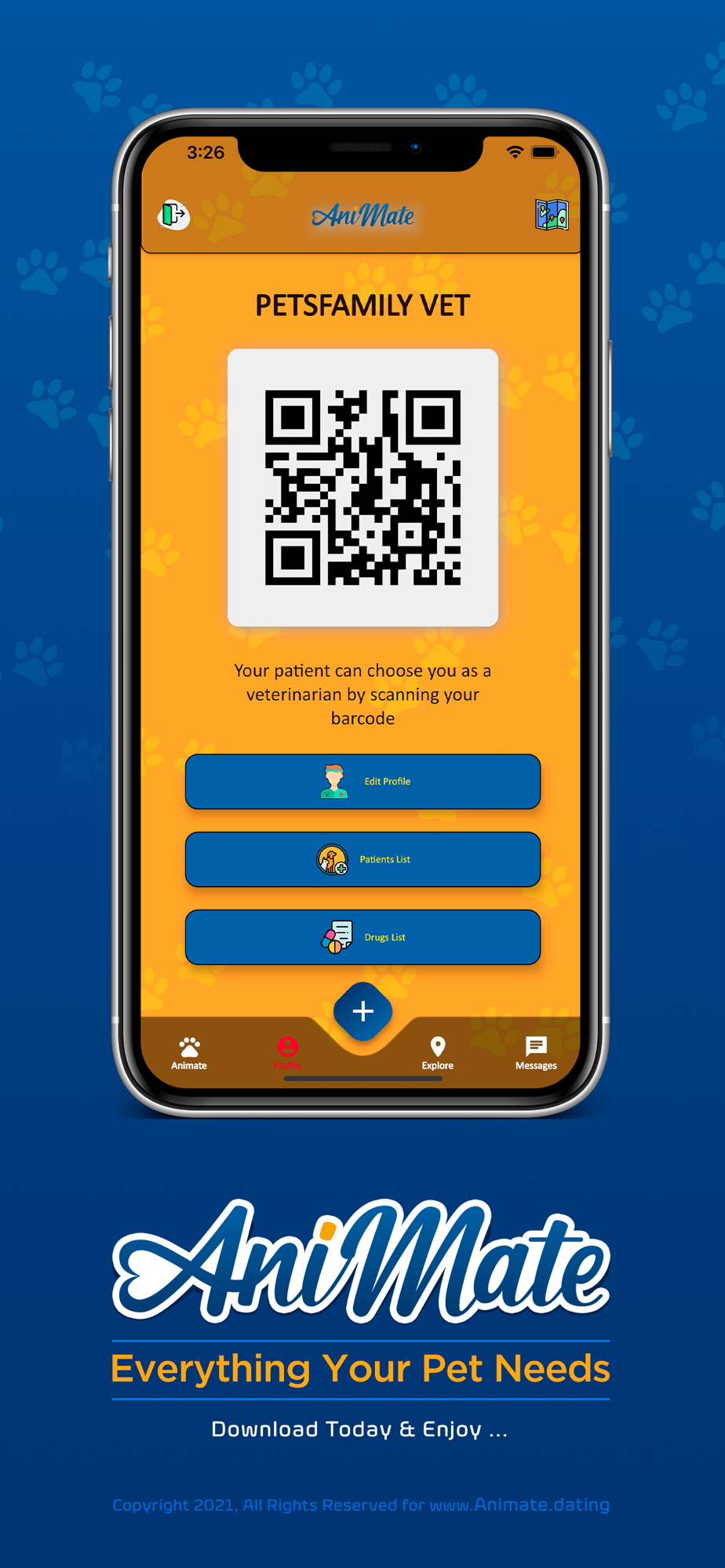 Animate is suitable for pet hospitals and veterinarians. You can register your workplace location in the app, mention your specialties, and add your address and telephone number so that anyone needing your help could find you easily. Veterinarians can also invite their previous patients to the app and manage their workflow through our app. Also, pet hospitals can acquire a QR Code. This will enable the patients to become members of that hospital in the app by scanning the code. The hospital will also be able to manage the medication and remind the owners to have their pets vaccinated.