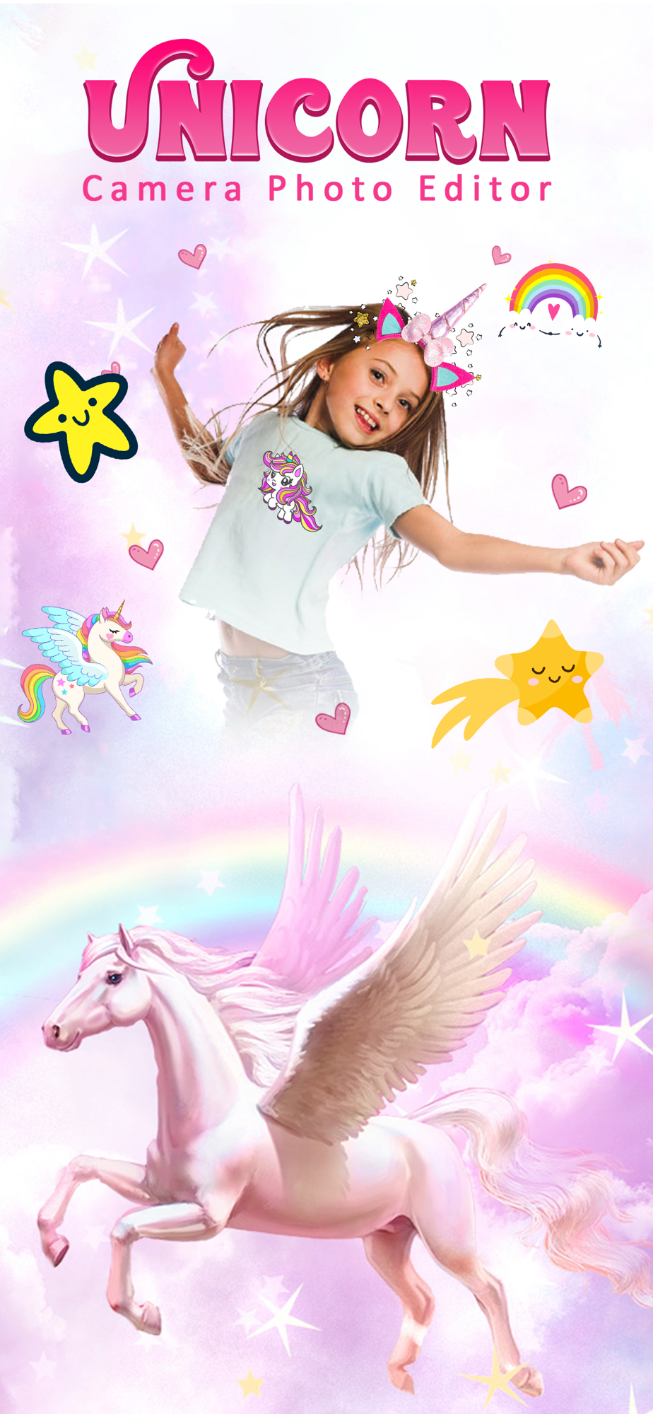 Hey girls, the best unicorn camera photo editor app is here! Turn into a cute little unicorn in seconds!