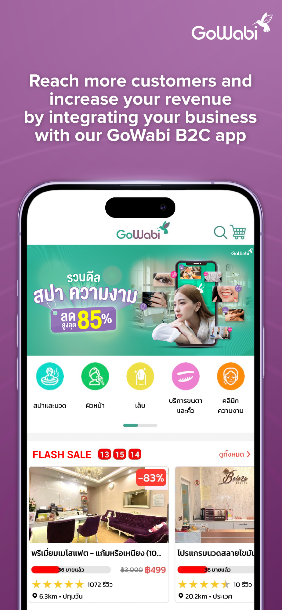 GoWabi Partner App allows you to manage your store effortlessly anywhere & anytime. Grow your business and sale with our main feature: incoming booking notification, eVoucher/Coupon redemption, submission of new promotions, customer review management, time-slot or appointment management, etc. We will bring you customers when you have empty seats!"