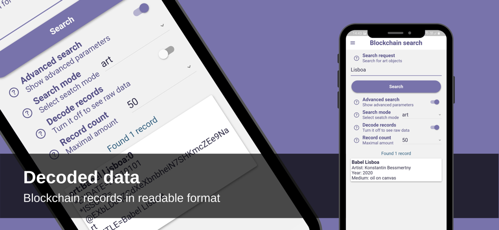 Features of the App include a powerful search engine that allows users to search for records in the blockchain. Smartefact also decodes the data found in the blockchain into a readable form through its user-friendly interface, so that the user has readable data instead of unfriendly raw data.