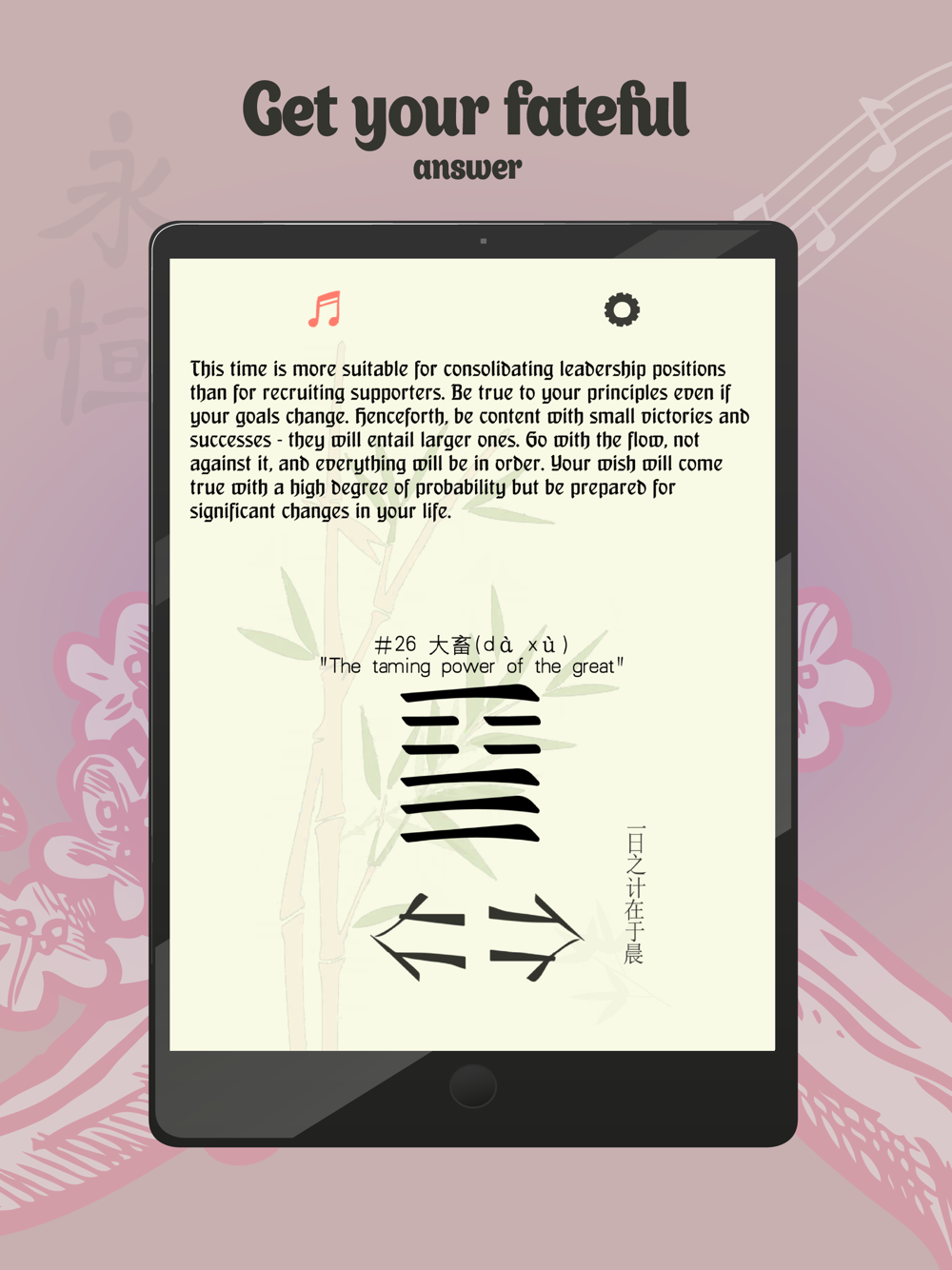 Find out what fate has prepared for you and immerse yourself in the atmosphere of old China with the "I Ching - Book of Changes" application!