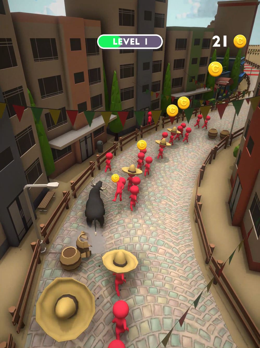 The bull has broken free and wants to take revenge on the offenders! Destroy everything that gets in your way. Collect coins and unlock new bulls. Are you brave enough to fight the head bullfighter?