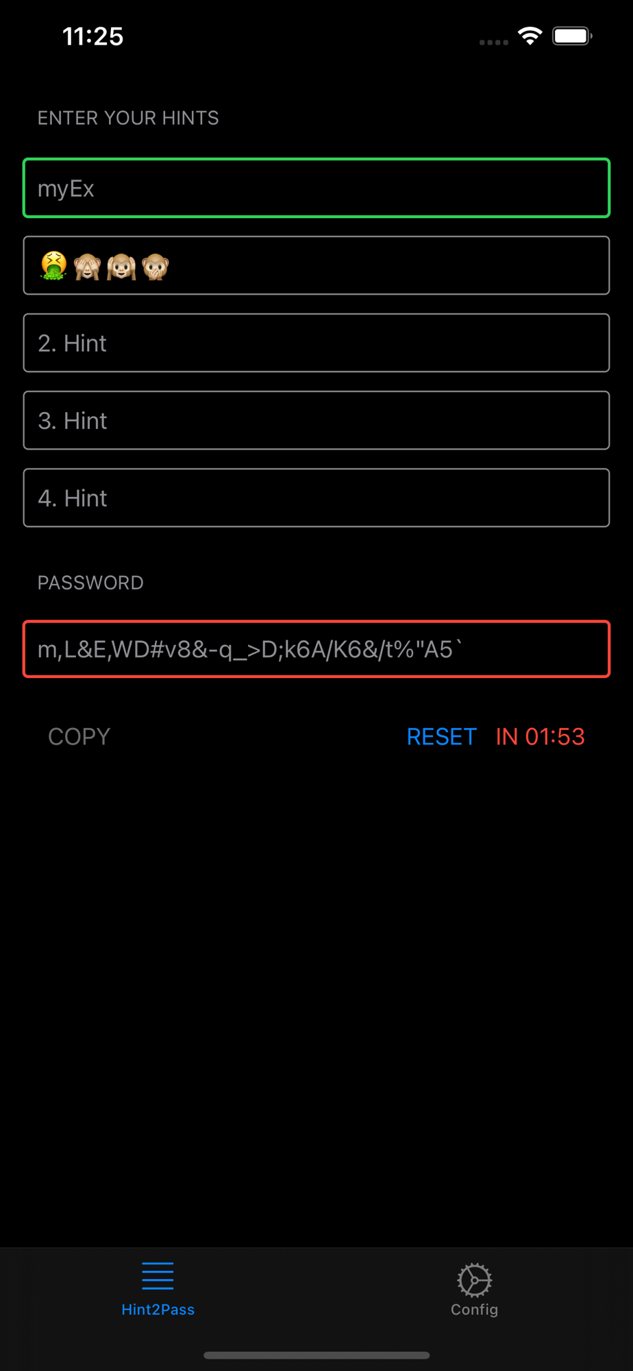- The order of your hints goes also into the password generation