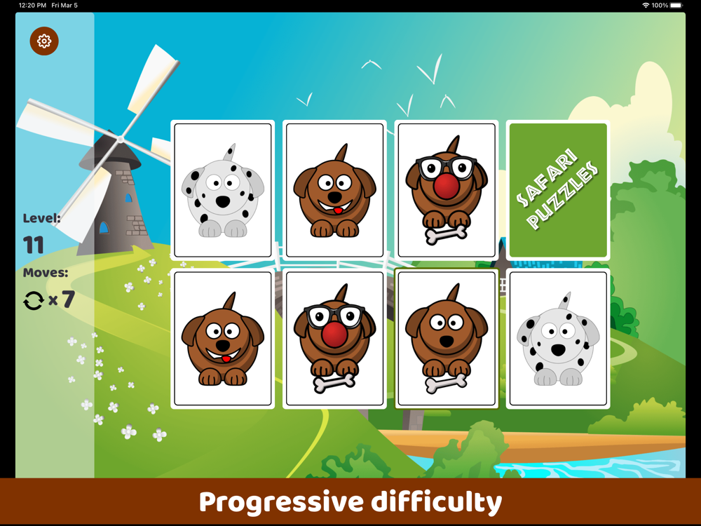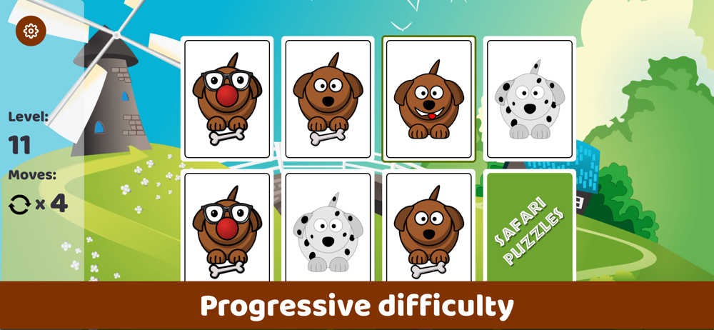 Help your little one learn to solve memory games of up to 16 cards with this 20-level game.