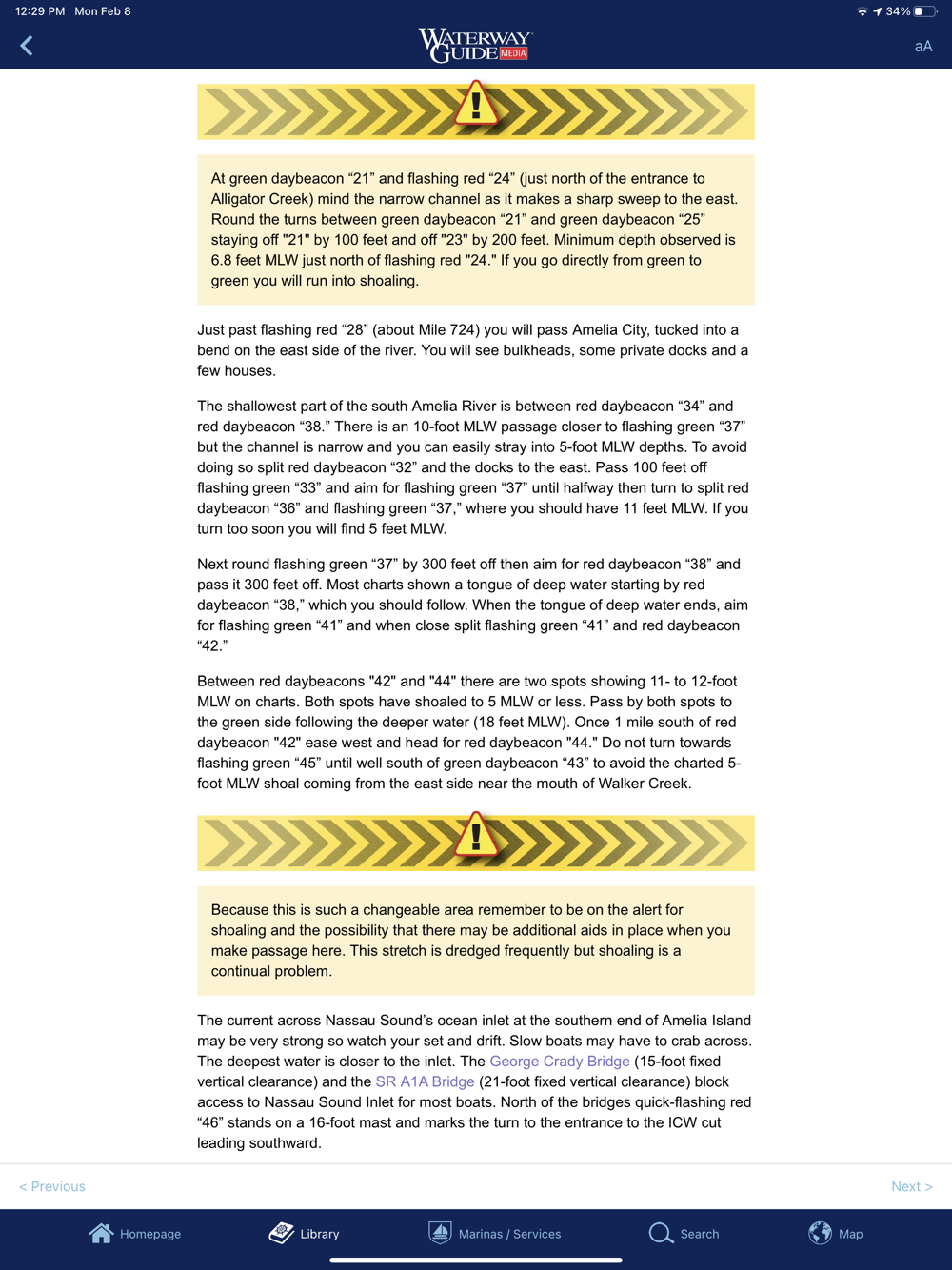 Access Waterway Guide's library of books as individual chapters or entire guides for the information and details you need for navigation. Content is optimized for mobile devices and can be bookmarked for availability offline.