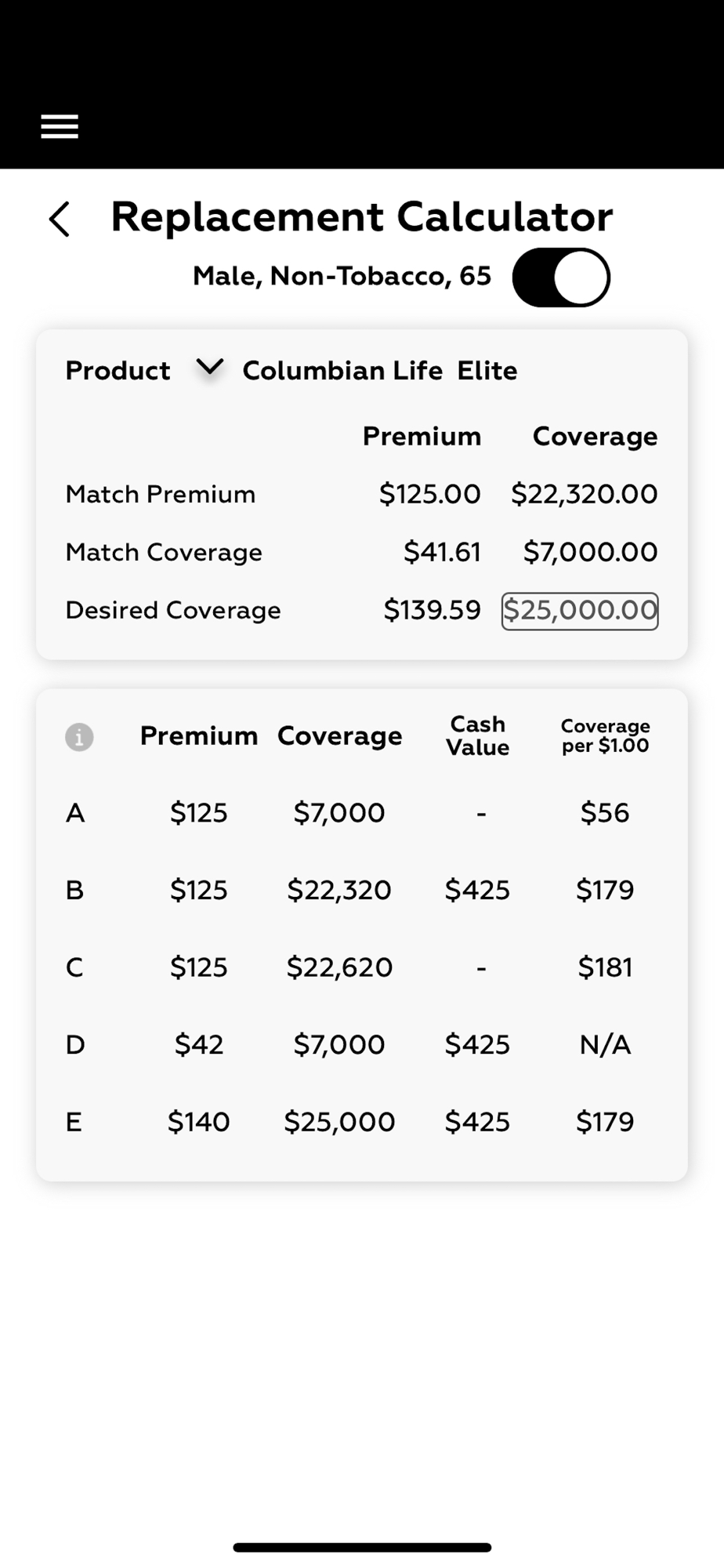 Enter the desired premium or coverage, and immediately get a sorted list of all your contracted providers! Updated regularly to keep up with changing rates. No more tables or going to multiple sites. Get all your information fast.