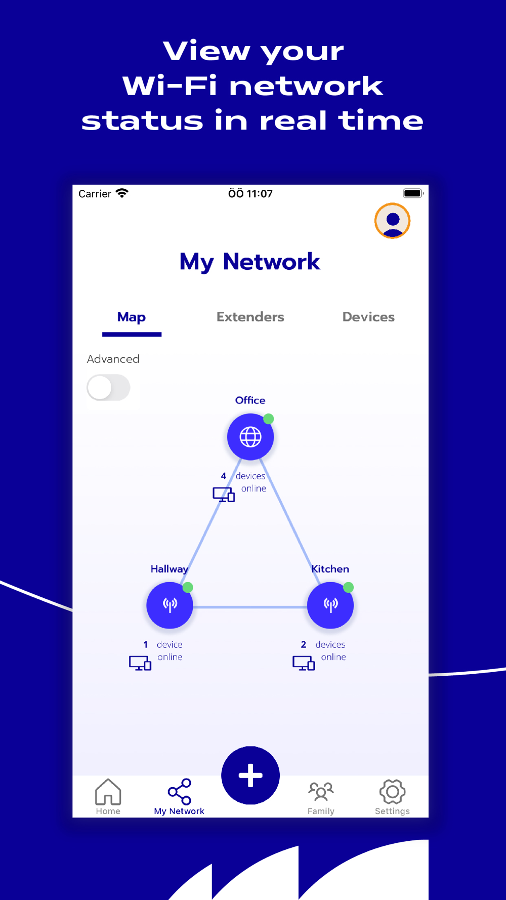 The Airties Vision app allows you to setup, monitor and control your Airties powered home Wi-Fi network. In a few simple steps, the app helps you install your Airties Wi-Fi mesh extenders and view your home network map, devices and connections in real-time. You will be able to run a speed test, manage who has Wi-Fi access – and when – through parental controls and guest network options.