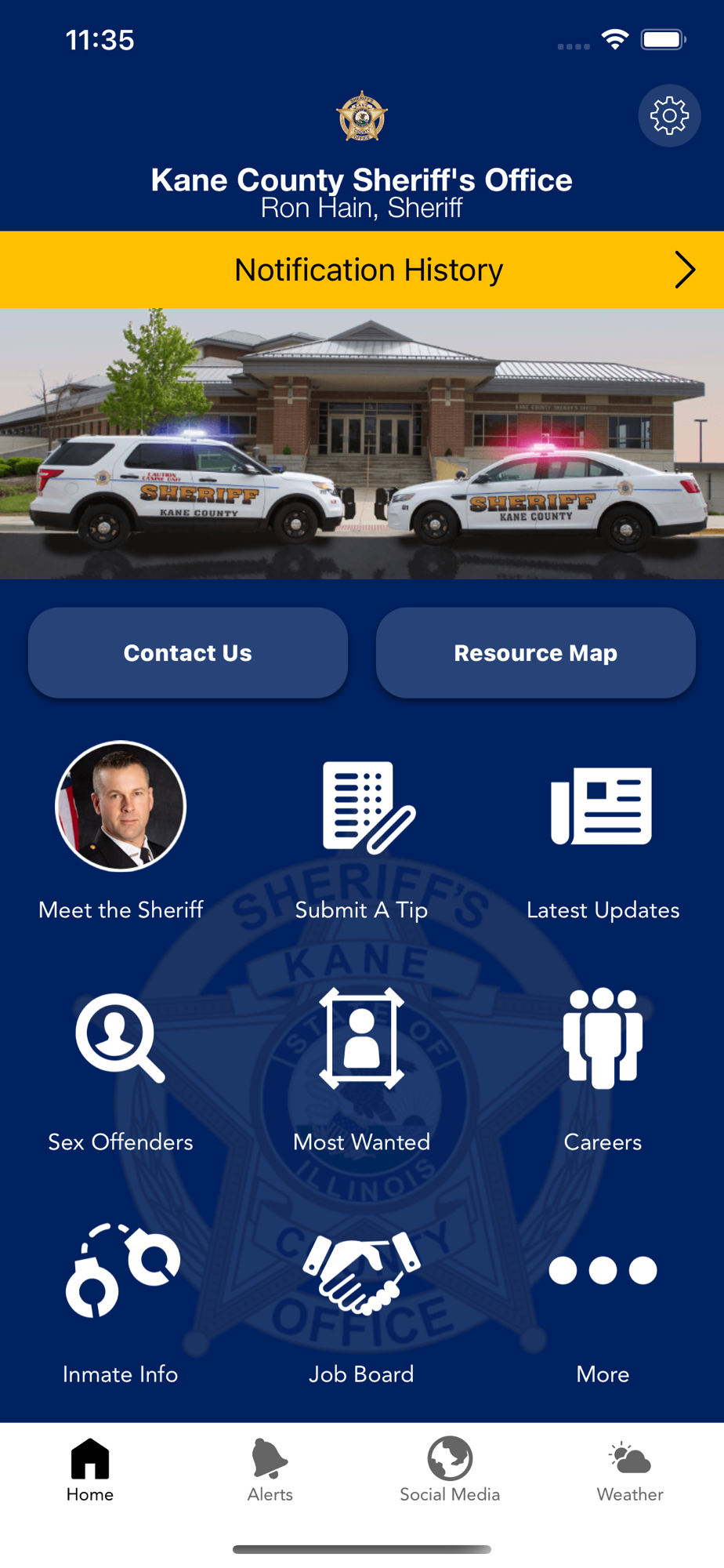 The Kane County Illinois Sheriff’s Office mobile application is an interactive app developed to help improve communication with area residents. The Kane County Sheriff App allows residents to connect with the Kane County Sheriff’s Office by reporting crimes, submitting tips, and other interactive features, as well as providing the community the latest public safety news and information.