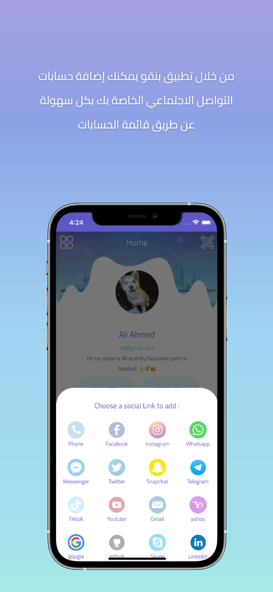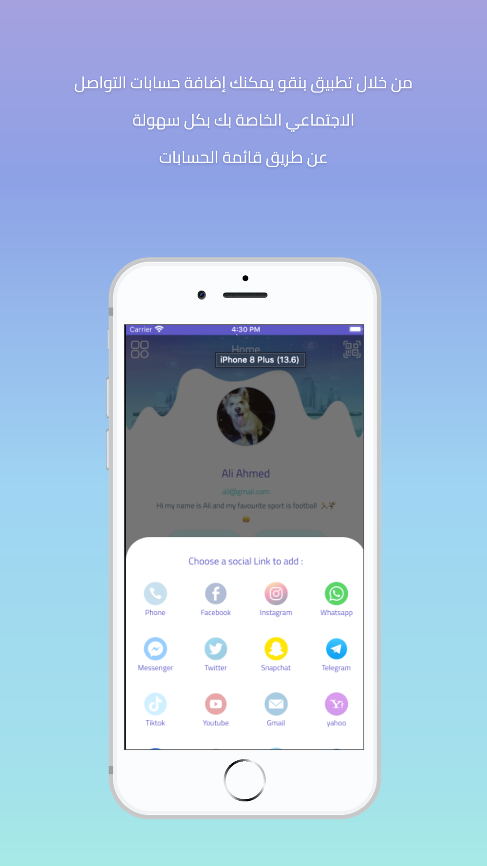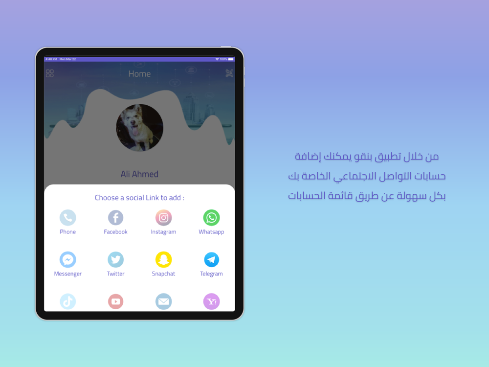 تطبيق بينقو لمشاركة معلومات التواصل الخاصة بك كـ صفحات التواصل الاجتماعي المختلفة او حتي ارقام الهواتف الخاصة بك او البريد الالكتروني بطريقة سهلة وبسيطة .