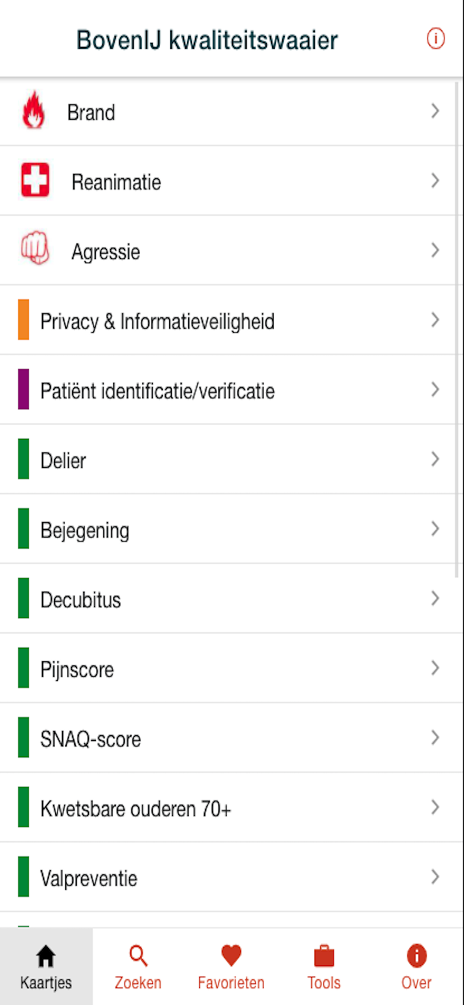 Deze app app geeft een korte samenvatting van een aantal belangrijke afspraken met betrekking tot onze patiëntveiligheid en medewerkersveiligheid in het BovenIJ ziekenhuis.