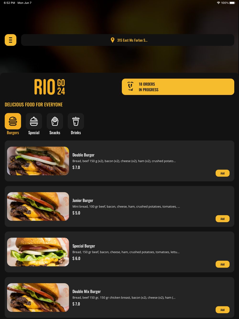 Fast food, a la carte dishes, lunches, pizzas, natural drinks, sodas, spirits and much more.