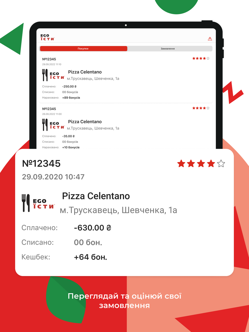 For your EGO to grow, no unnecessary movements are needed - just order pizza or any other dish at our partner network and get EGO bonuses in the amount of 7% of the check sum. Only alcoholic beverages don’t generate EGO bonuses.