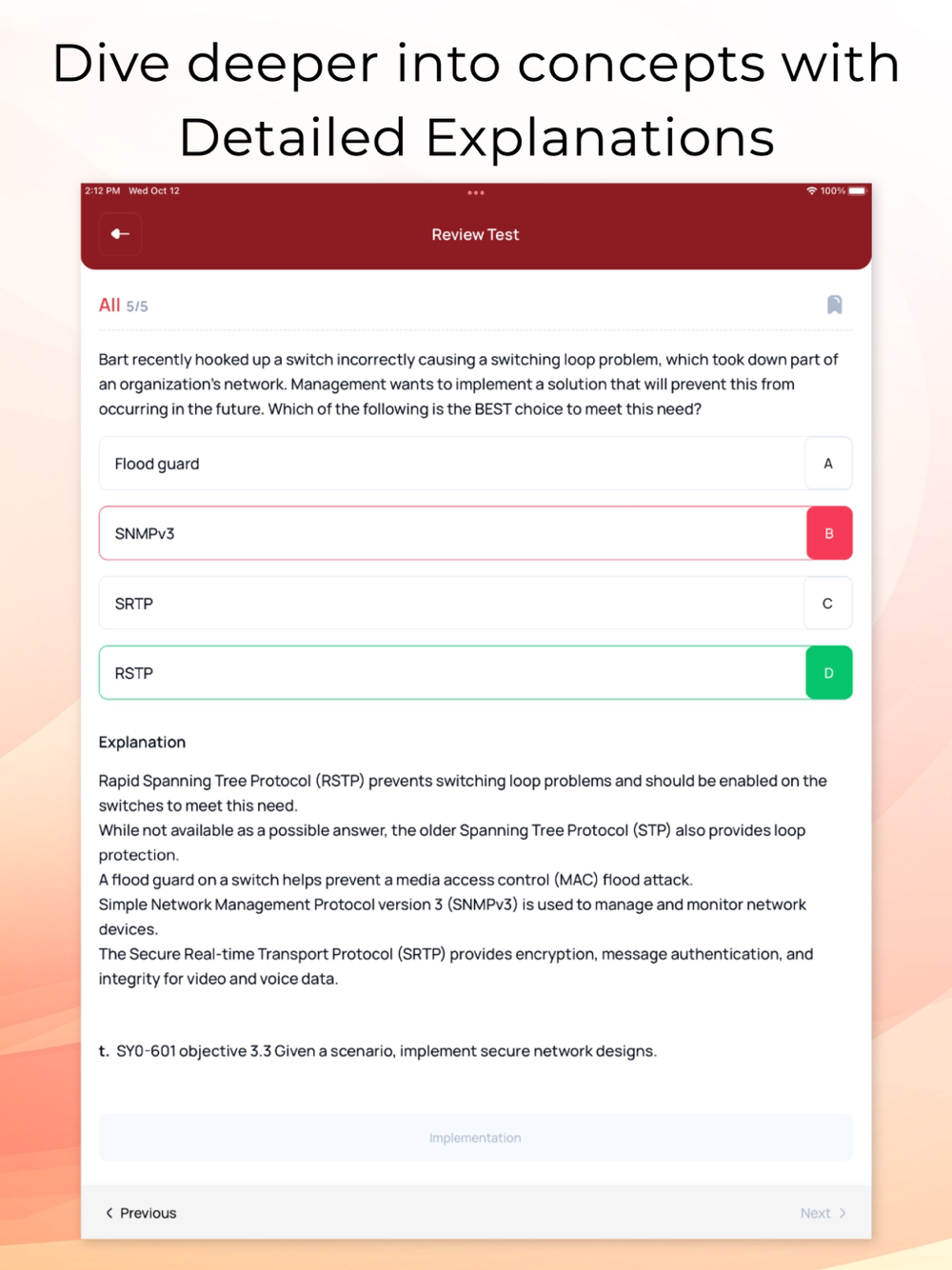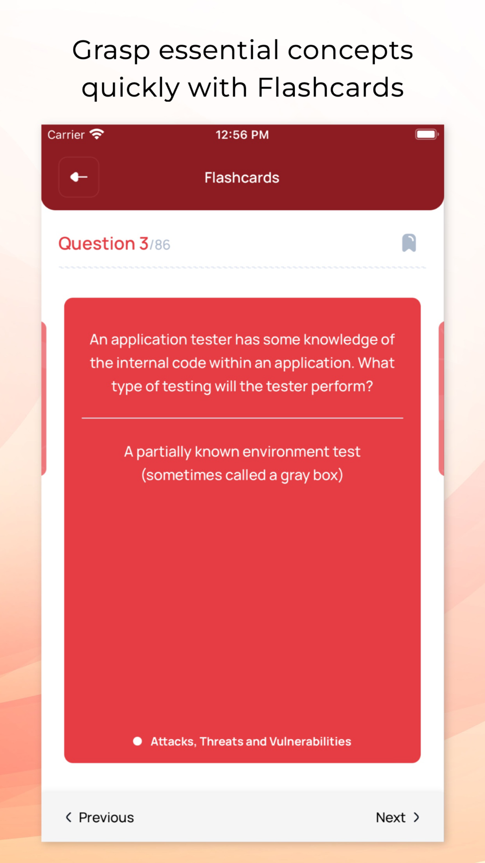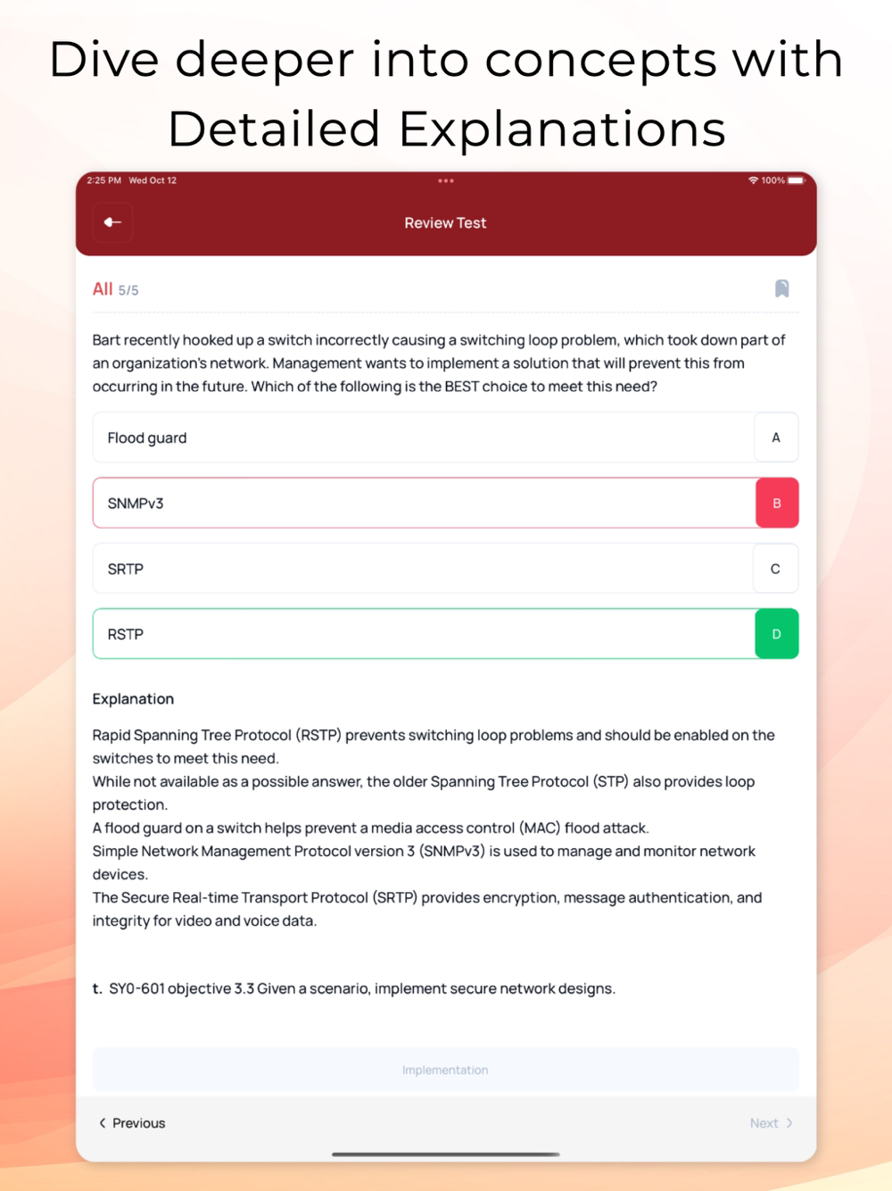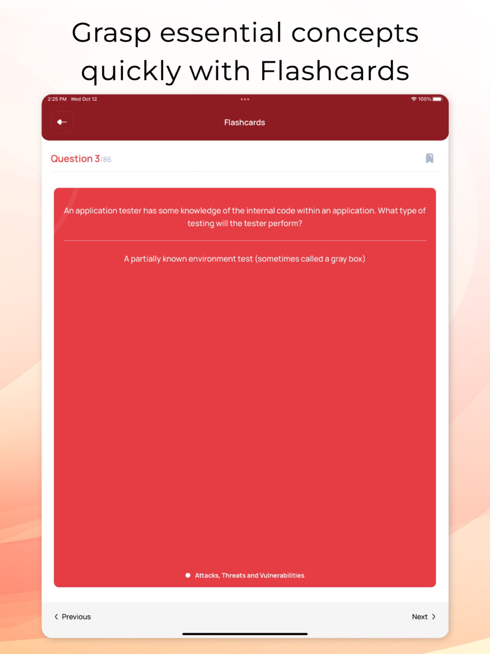 Personalize your practice with our custom test builder feature. Select specific topics and questions to create tests tailored to your needs for the Security+ Exam. The test engine generates personalized tests with a mix of new and your weakest questions, helping you focus on the areas where you need the most improvement.