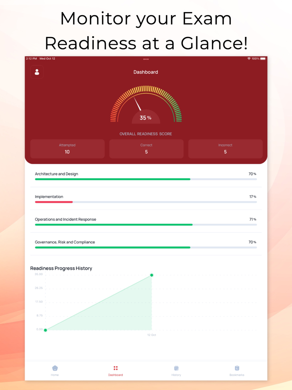 Find out how prepared you are for the real exam with our readiness score feature. It tells you exactly where you stand and which areas you should focus on.