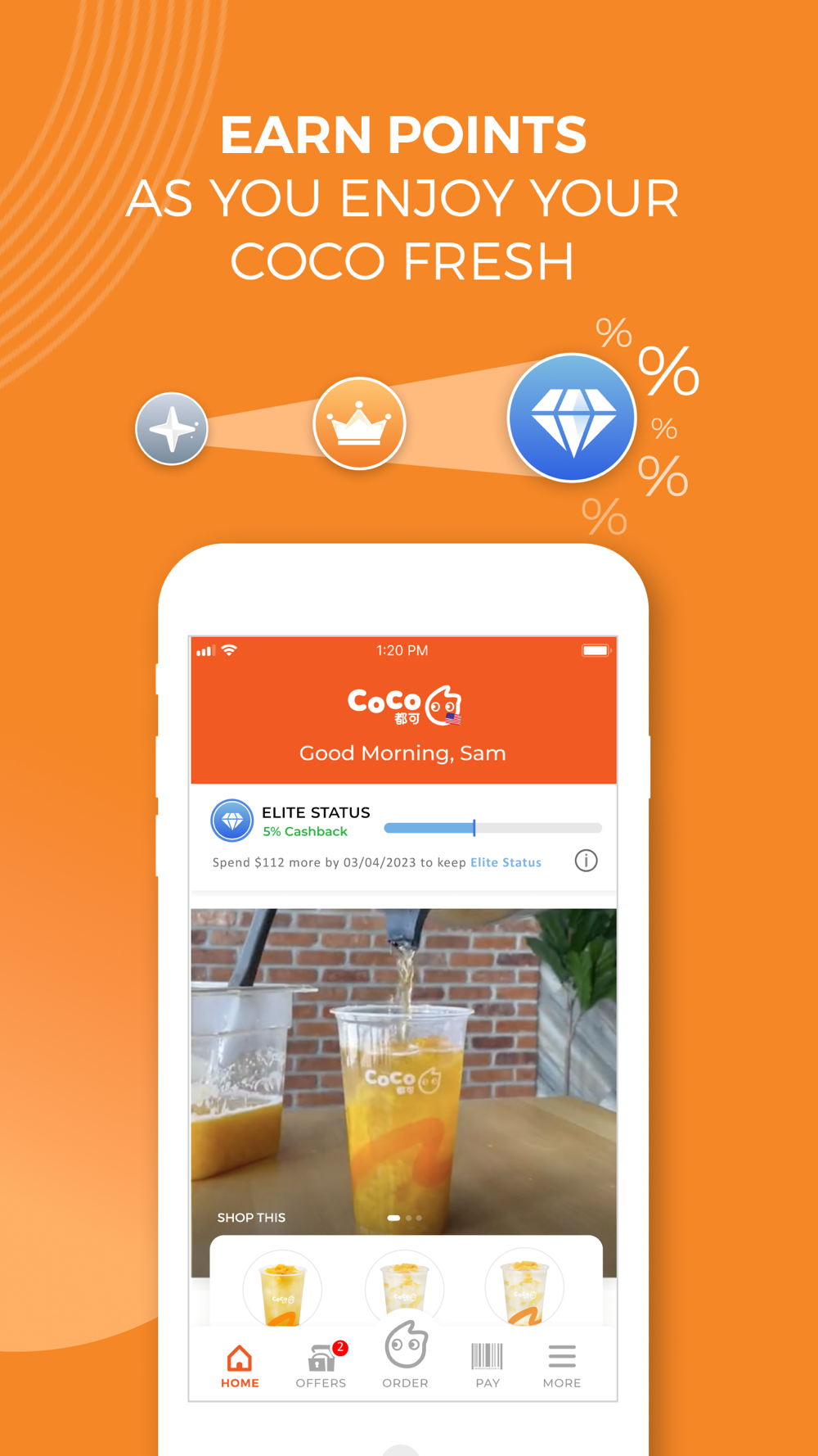 By ordering from our app, customers are able to skip the line and increase their rewards tier through the membership program. Additional features include customers being able to add money to their accounts, setting up auto-reload, being able to view order history, keeping track of rewards, and more. Just scan and go!