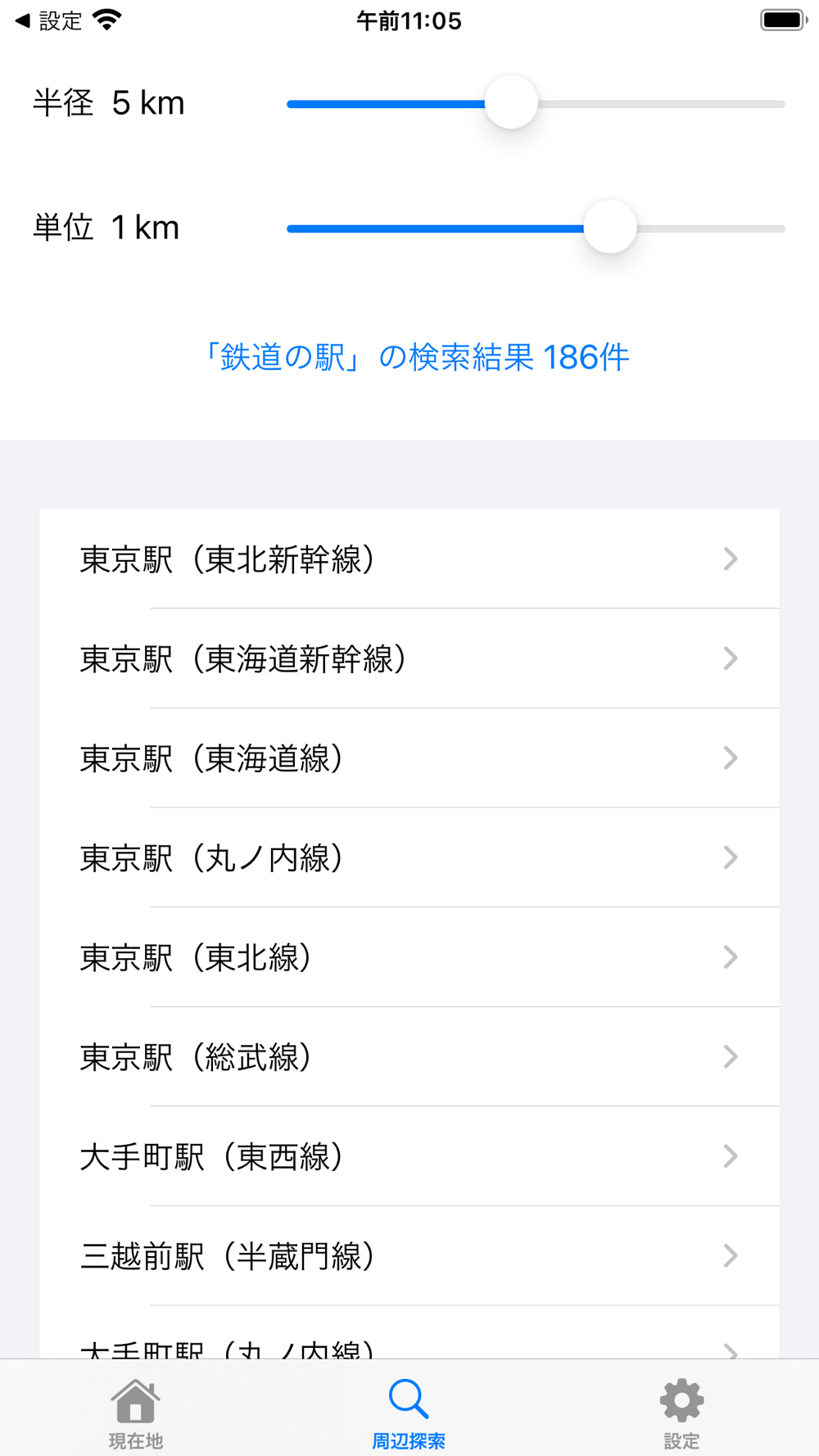 半径を指定して、その圏内にある項目を表示するための地図アプリです。視覚に障害のある方でも操作しやすいようVoiceOverに最適化されています。