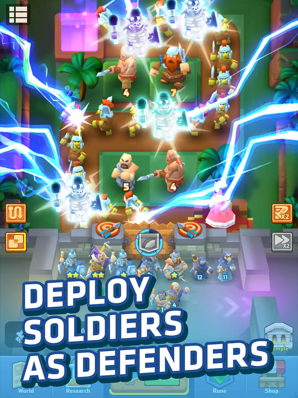 Deploy various soldiers and use various runes to your advantage! Wipe out the goblin-like monsters with your strategy to achieve victory!