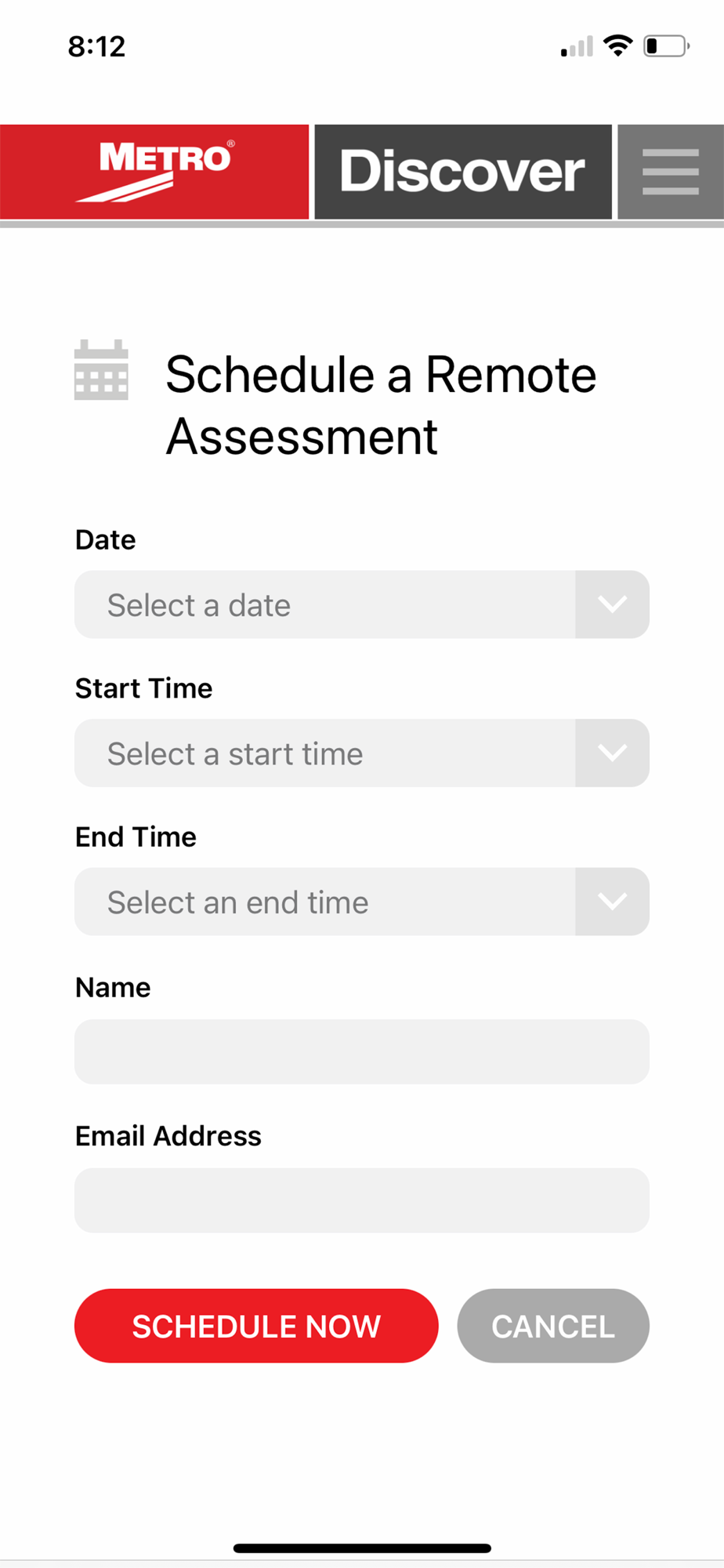 Complete field assessments with the Metro Discover app — answer a series of guided questions that will facilitate the collection of information needed to create a product solution proposal. The Discover app is intended for use by Metro-certified specialists only, including Metro employees and field representative partners. This app is not intended for use by the general public, and there is no paid content within the app.