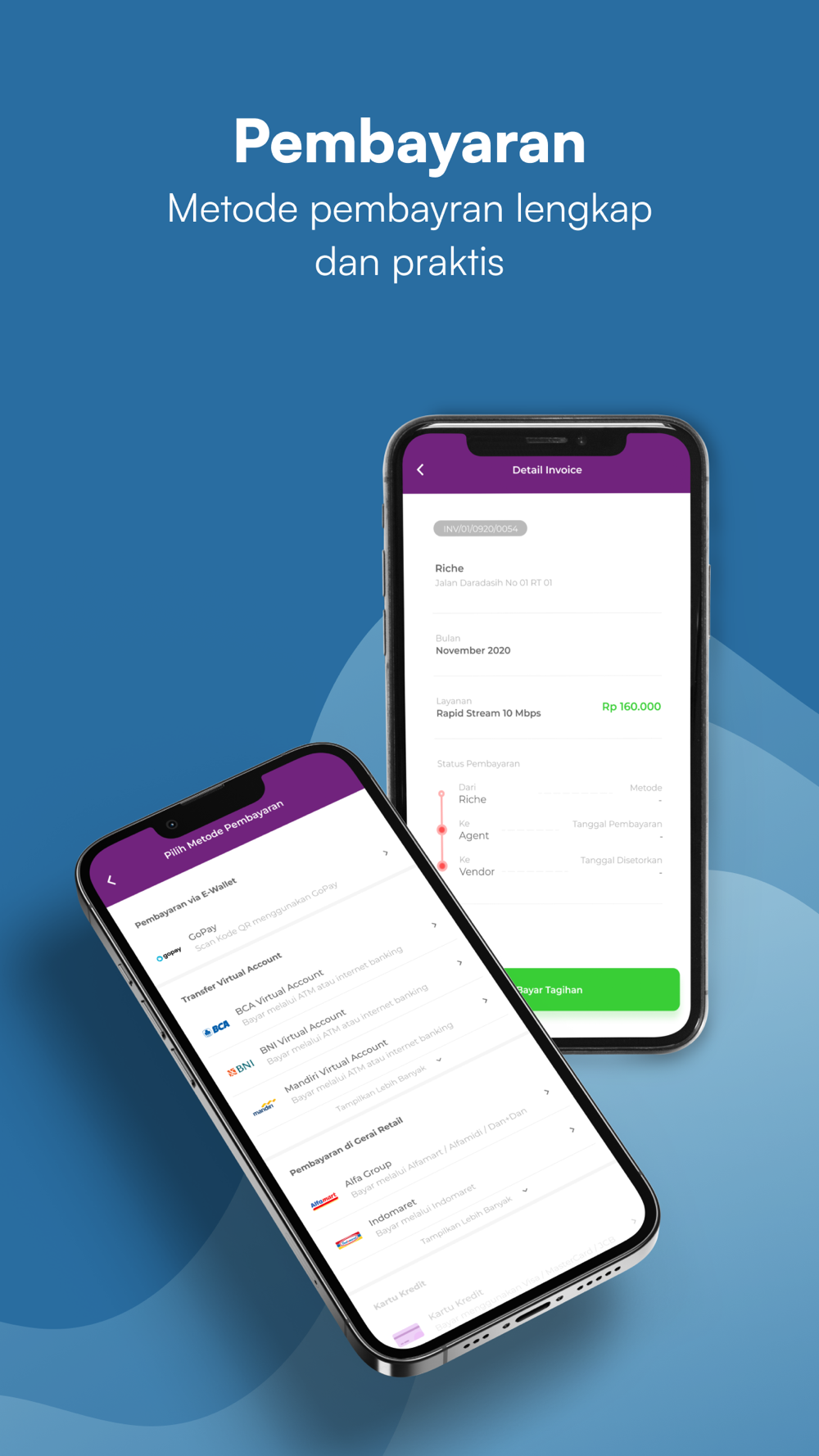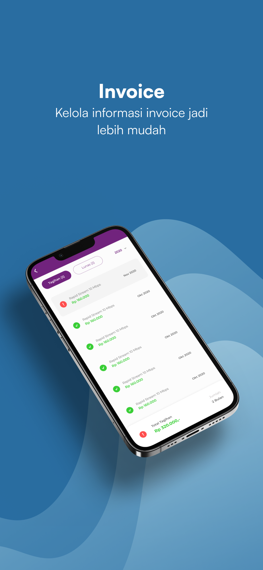 Aplikasi Fiberstream untuk pelanggan dengan fitur monitoring layanan, tagihan, pembayaran, hingga notifikasi dan pemberitahuan