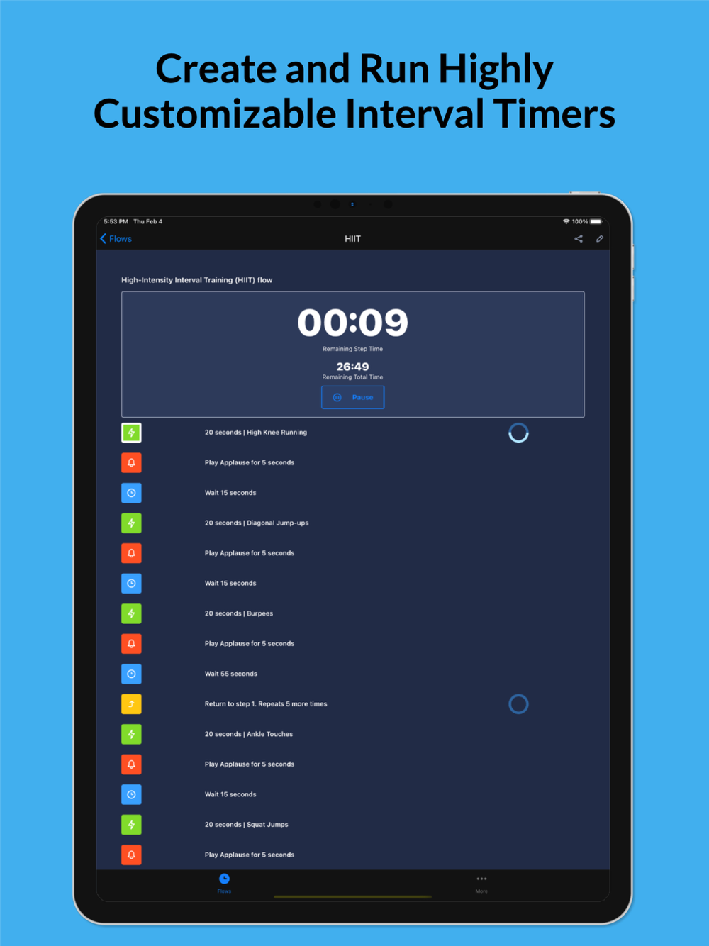 Interval timers are useful for exercise, like High-intensity interval training (HIIT) or Tabata, and can also be used to manage productivity, events, and more!