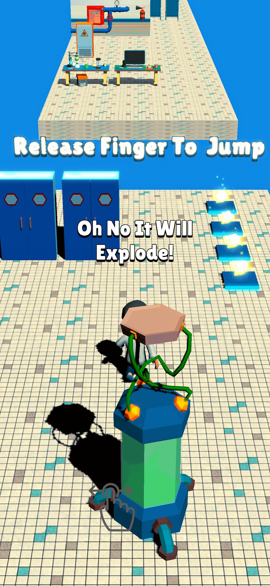 Pick up pads and use them to run over gaps. Jump over obstacles if you need to.