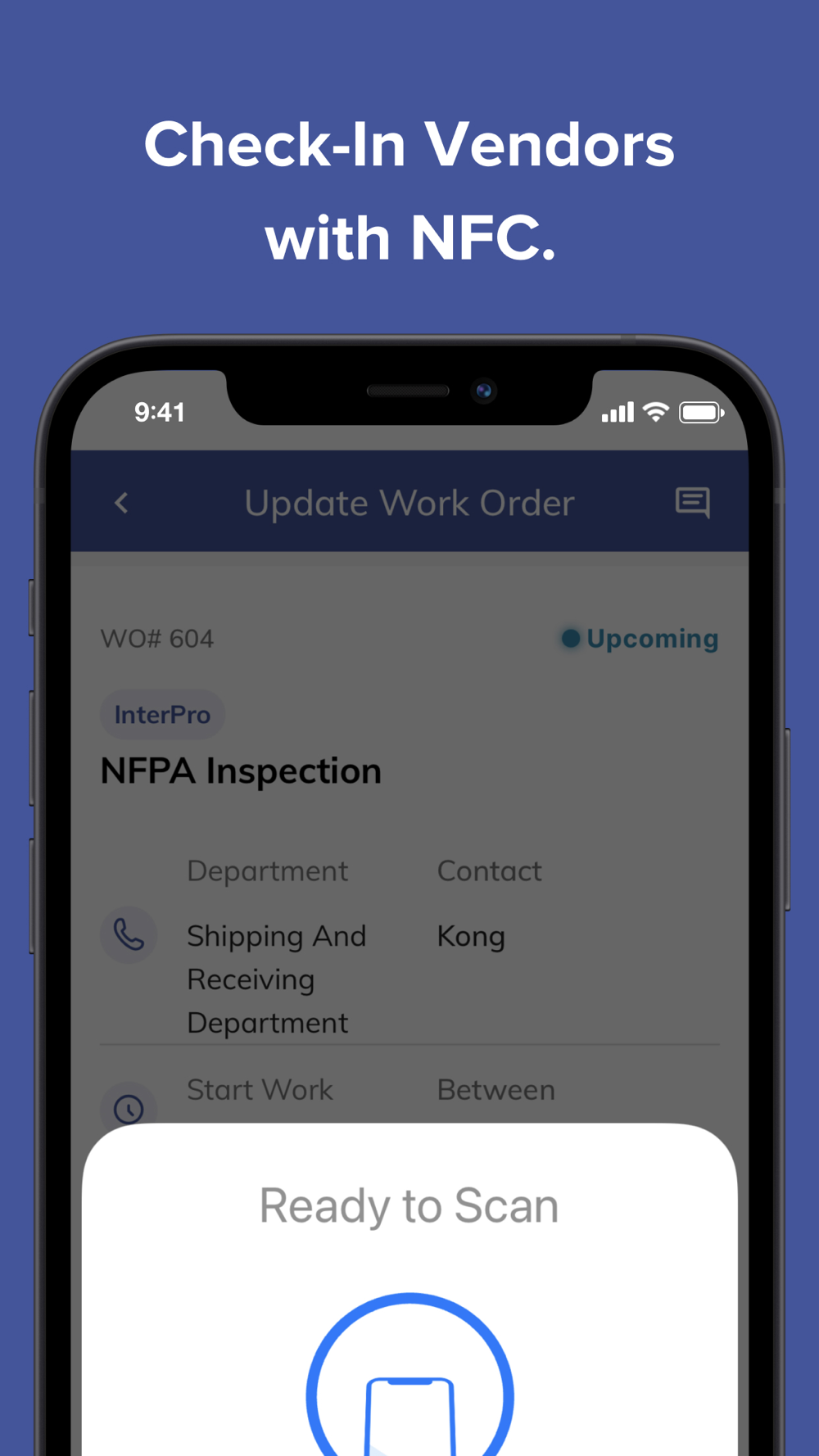 If supported in your facility, vendor technicians can check-in via NFC or by scanning location/ asset barcodes. Maps guide technicians to service locations, and you can see where checked-in technicians are at any given time.