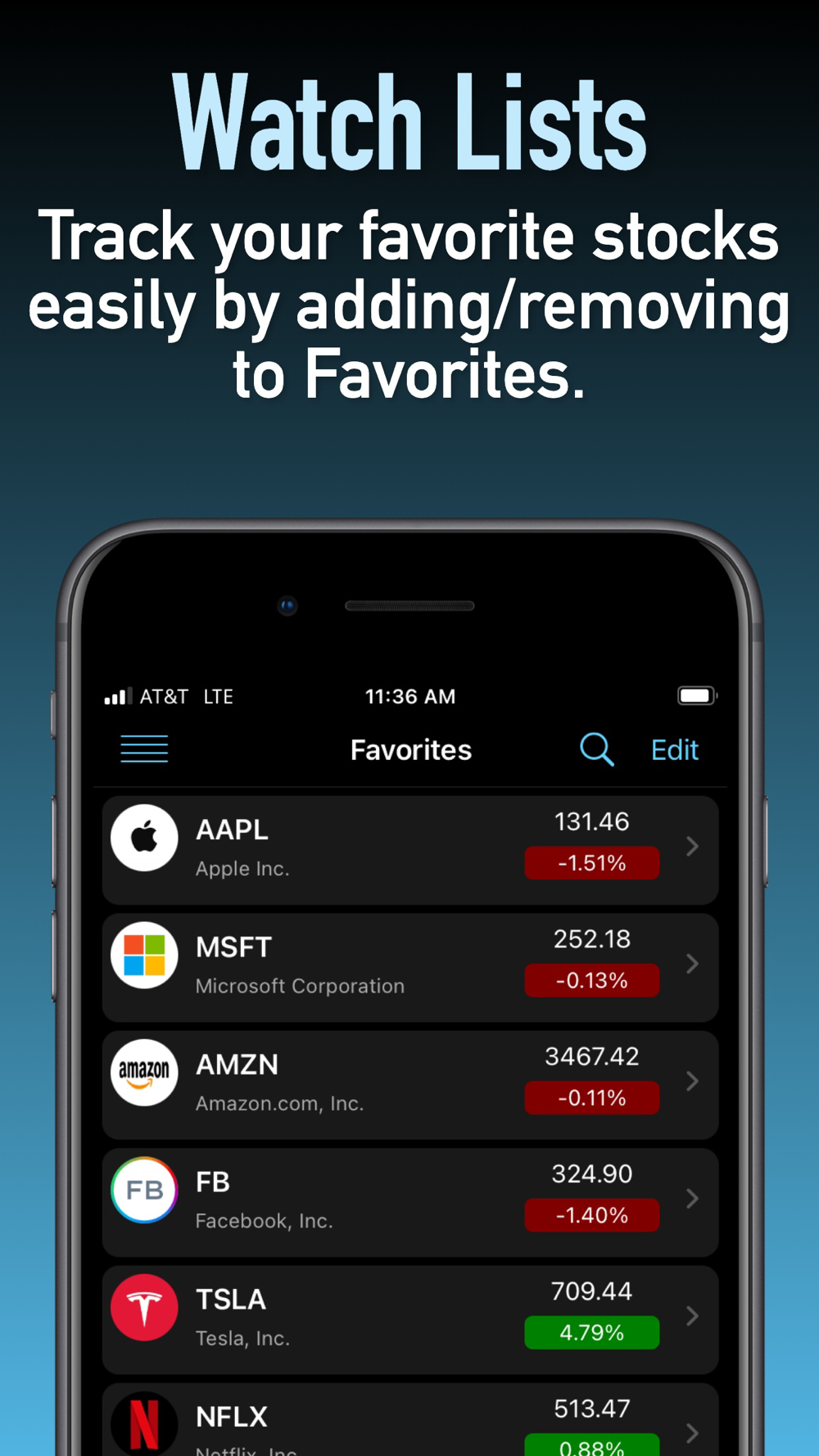 --> Search live quotes, charts and details of any stock ticker within the App.