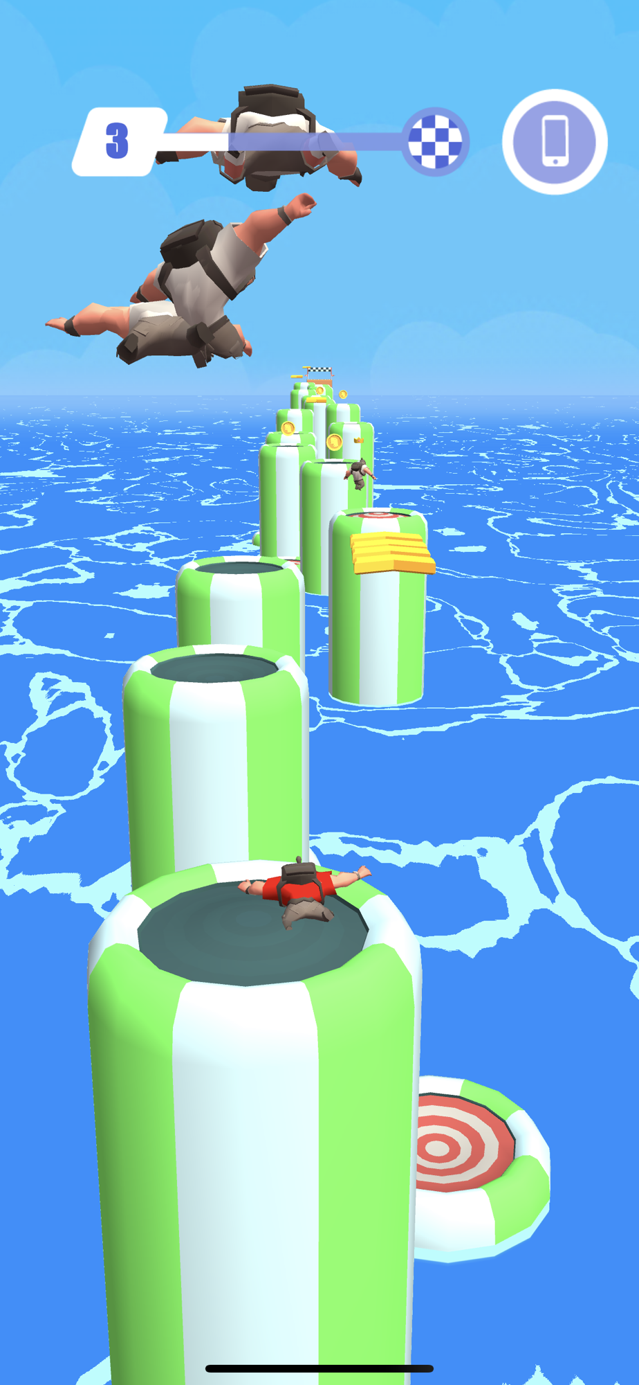 Jump on air platforms, outrun rivals. Come to the finish line first. Use strong jumps, push opponents. Become the best jumper!