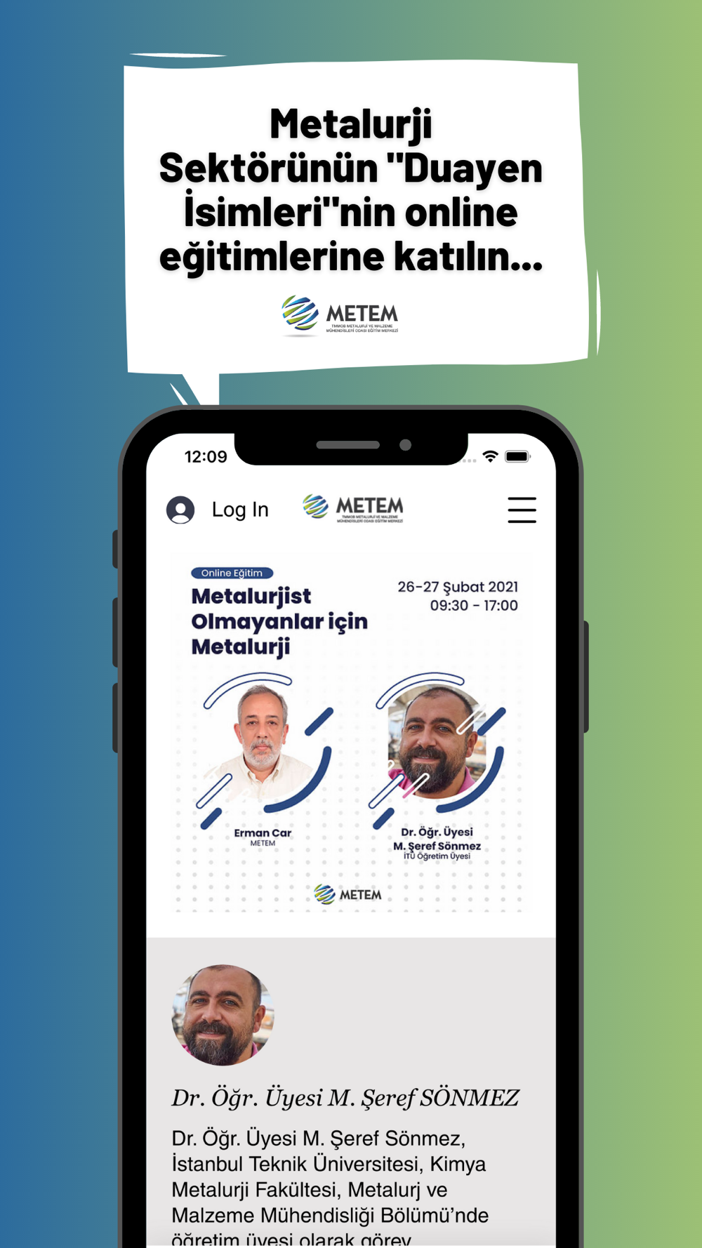 METEM ( TMMOB Metalurji ve Malzeme Mühendisleri Odası Eğitim Merkezi ) meslektaşlarına ve sektör çalışanlarına bilimsel, teknik ve uygulamaya yönelik nitelikli eğitim ve danışmanlık hizmeti götürerek sektörel ve toplumsal gelişimi desteklemek amacıyla 2015 yılında TMMOB Metalurji ve Malzeme Mühendisleri Odası tarafından kurulmuştur.