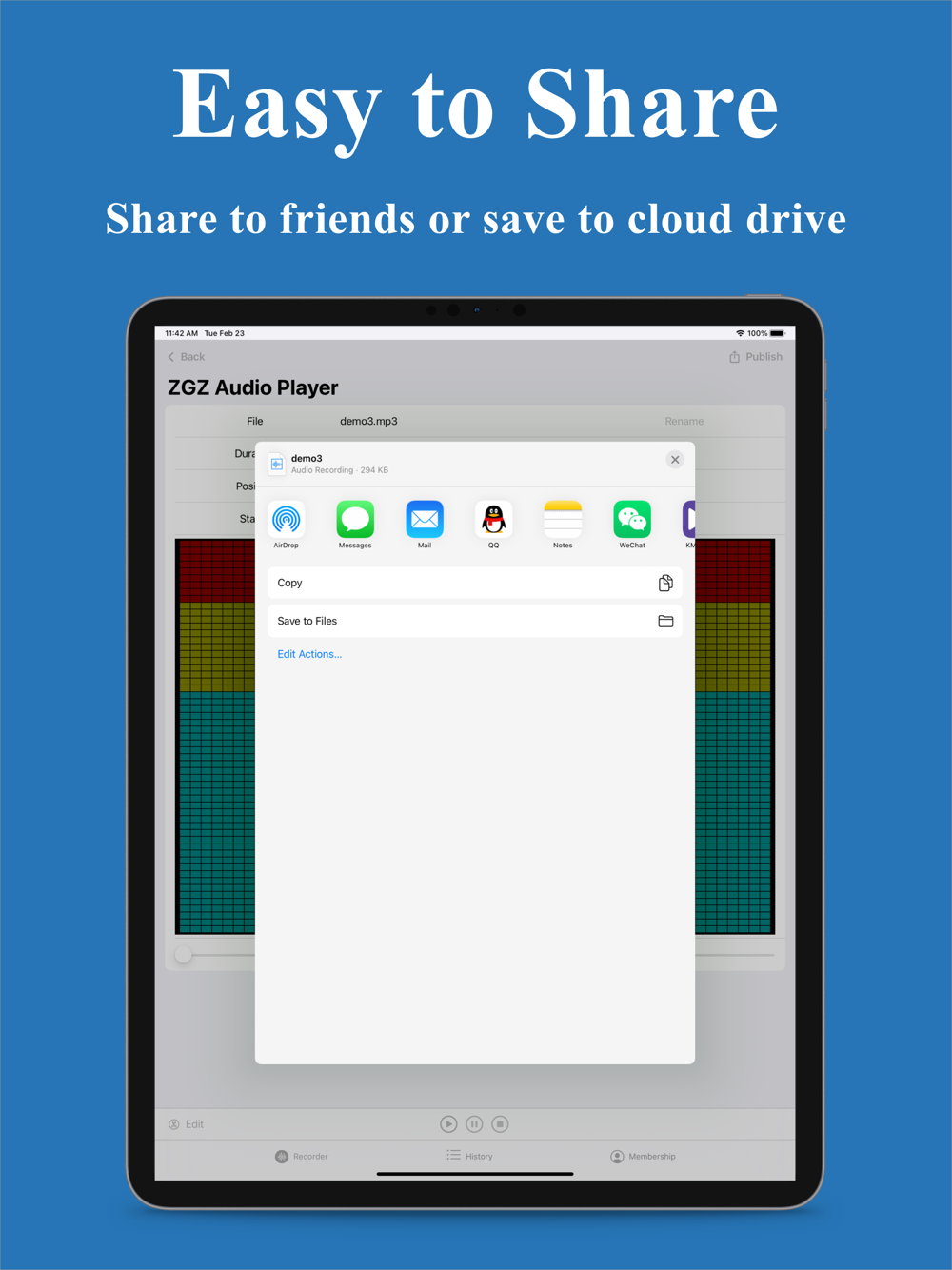 • Easy to share. It's easy to export your audio to file and share it to your friends.