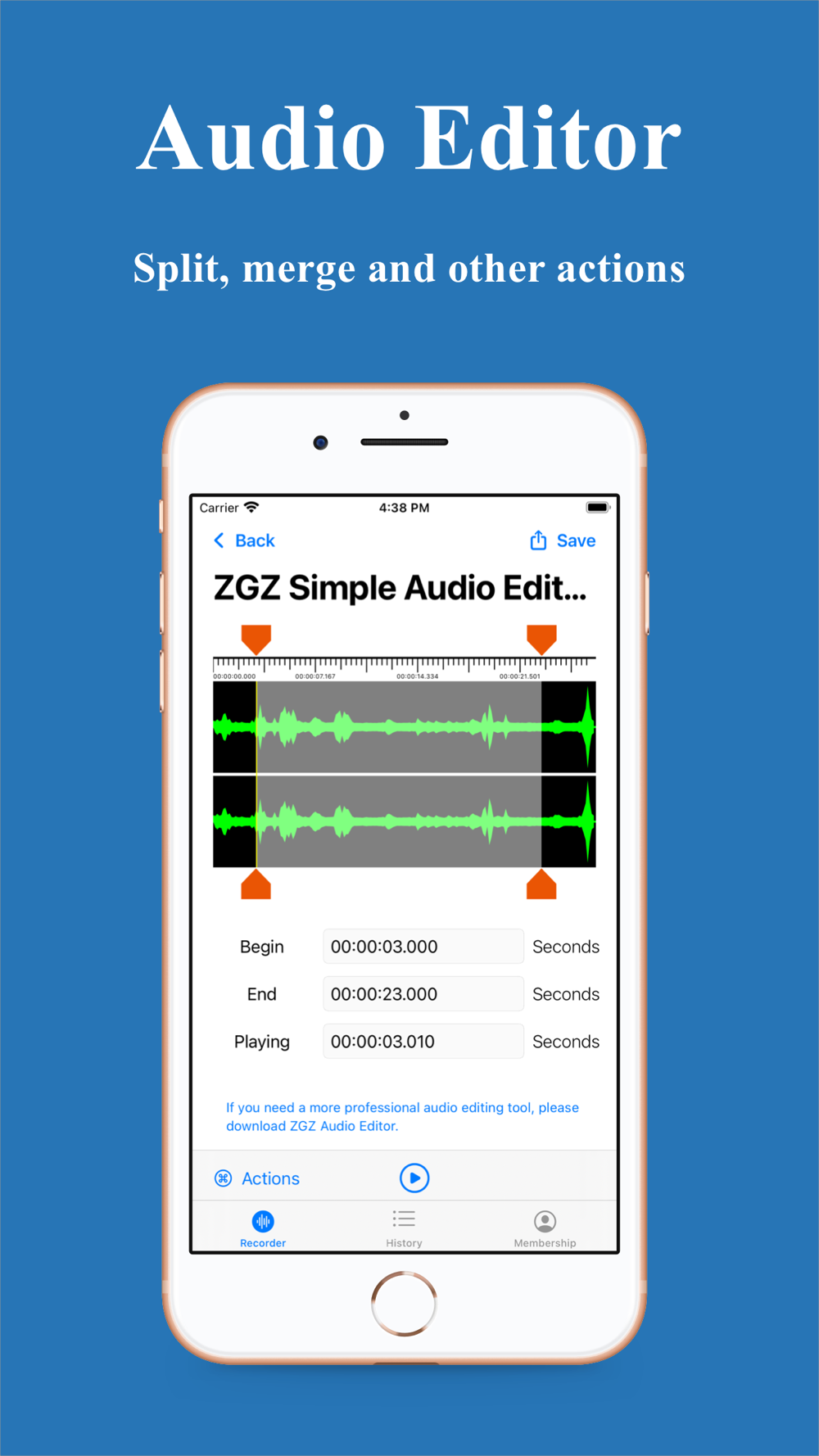 ZGZ Audio Recorder contains optional in-app purchases and subscriptions
