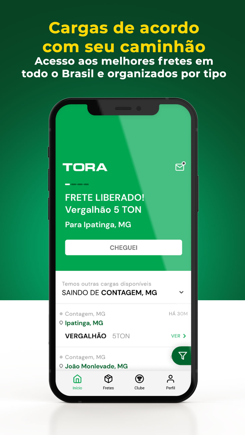 Com o APP Tora Transportes, você tem as melhores cargas e os melhores fretes de acordo com as suas características e de seu caminhão, sem pagar nada mais por isso. As oportunidades são organizadas por tipo de carga: