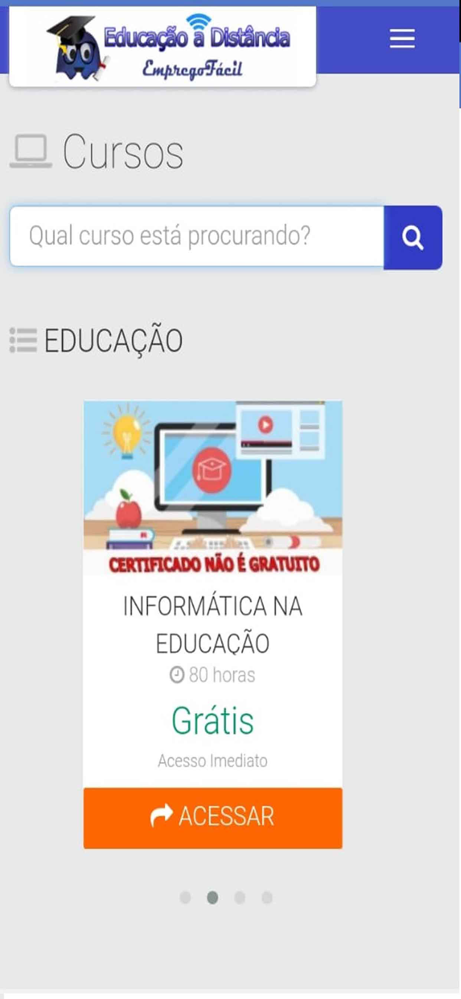O aplicativo ainda oferece cursos gratuitos através do celular com certificados válidos em todo o território nacional.