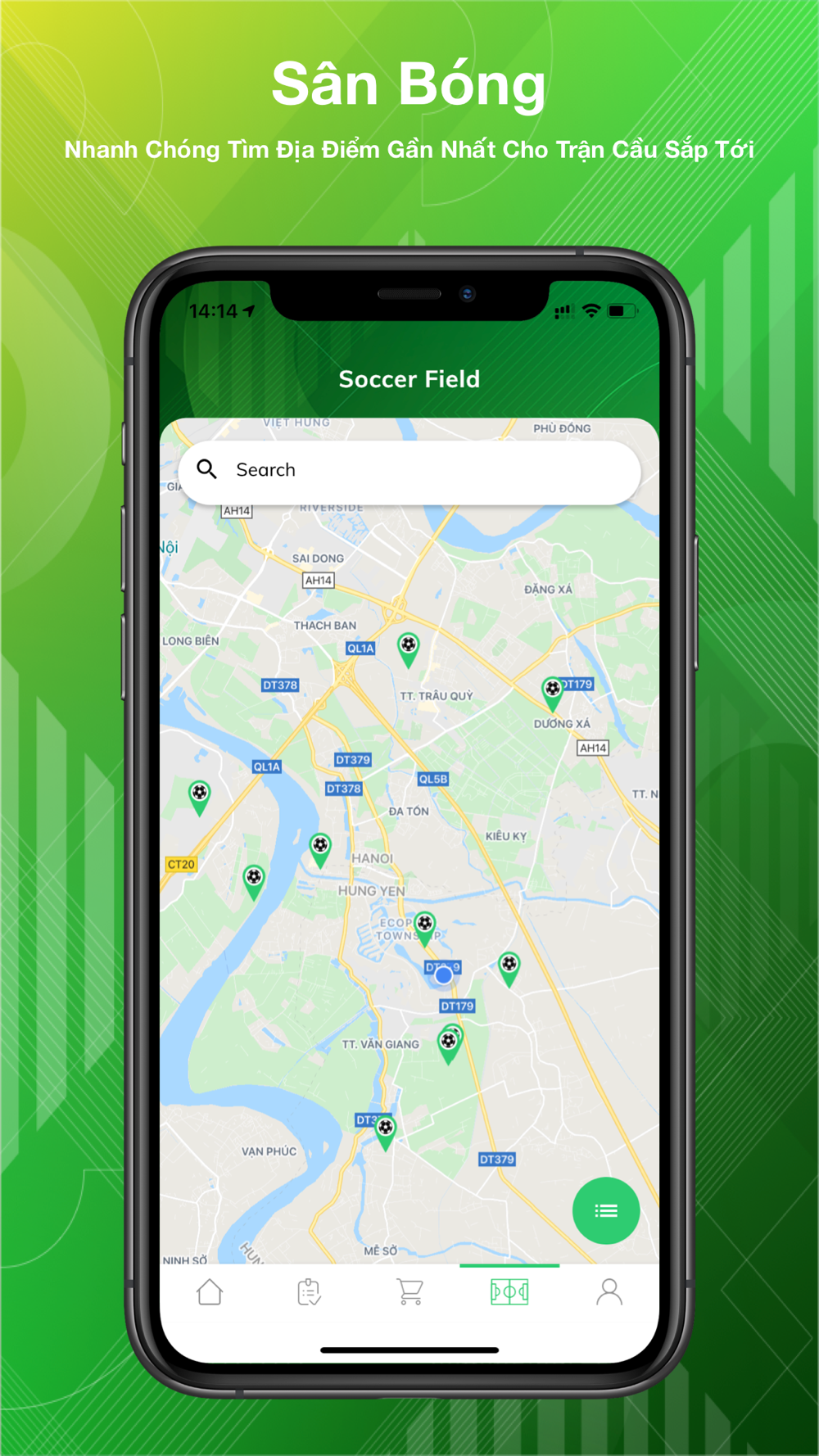 - Tìm kiếm các sân bóng, cũng như đăng kí thêm sân bóng nếu chưa có trong cơ sở dữ liệu