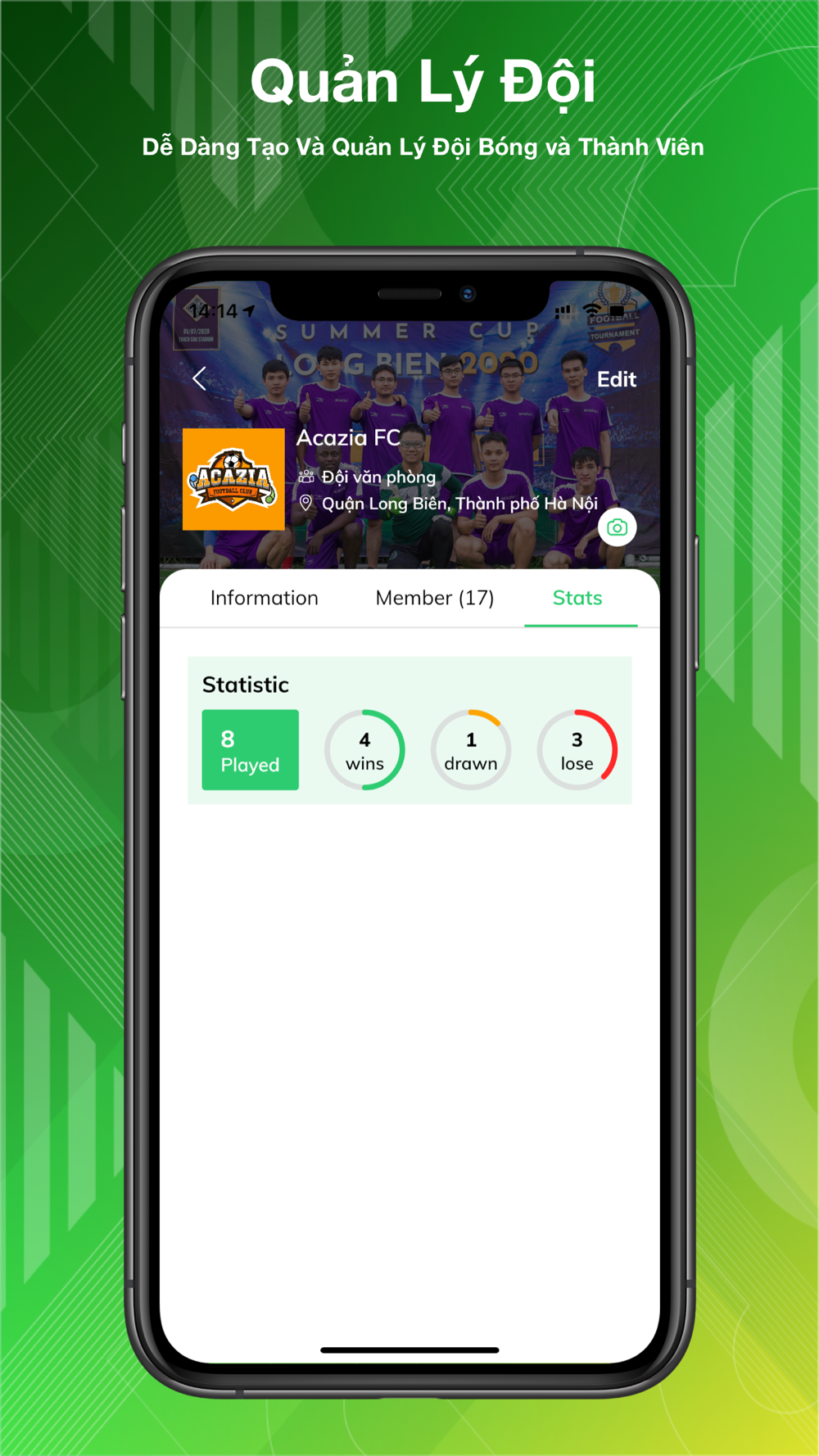 - Xem thông tin đội bóng bạn muốn giao lưu cũng như thông tin của từng cầu thủ