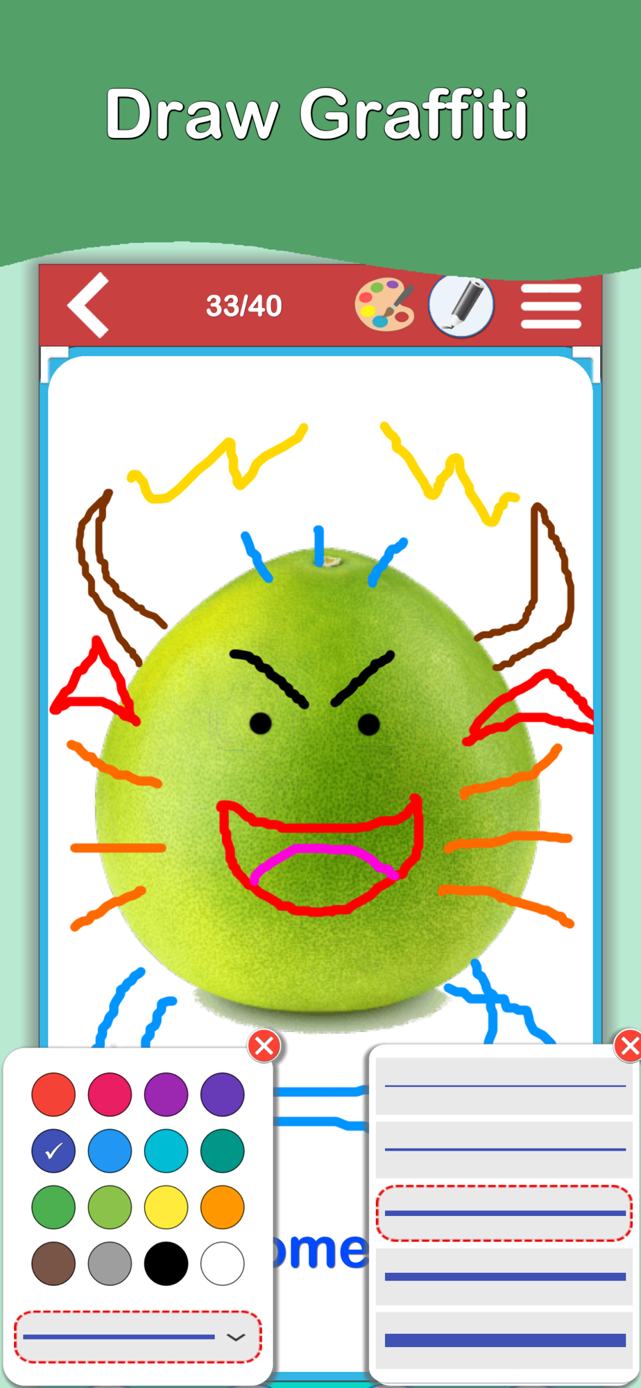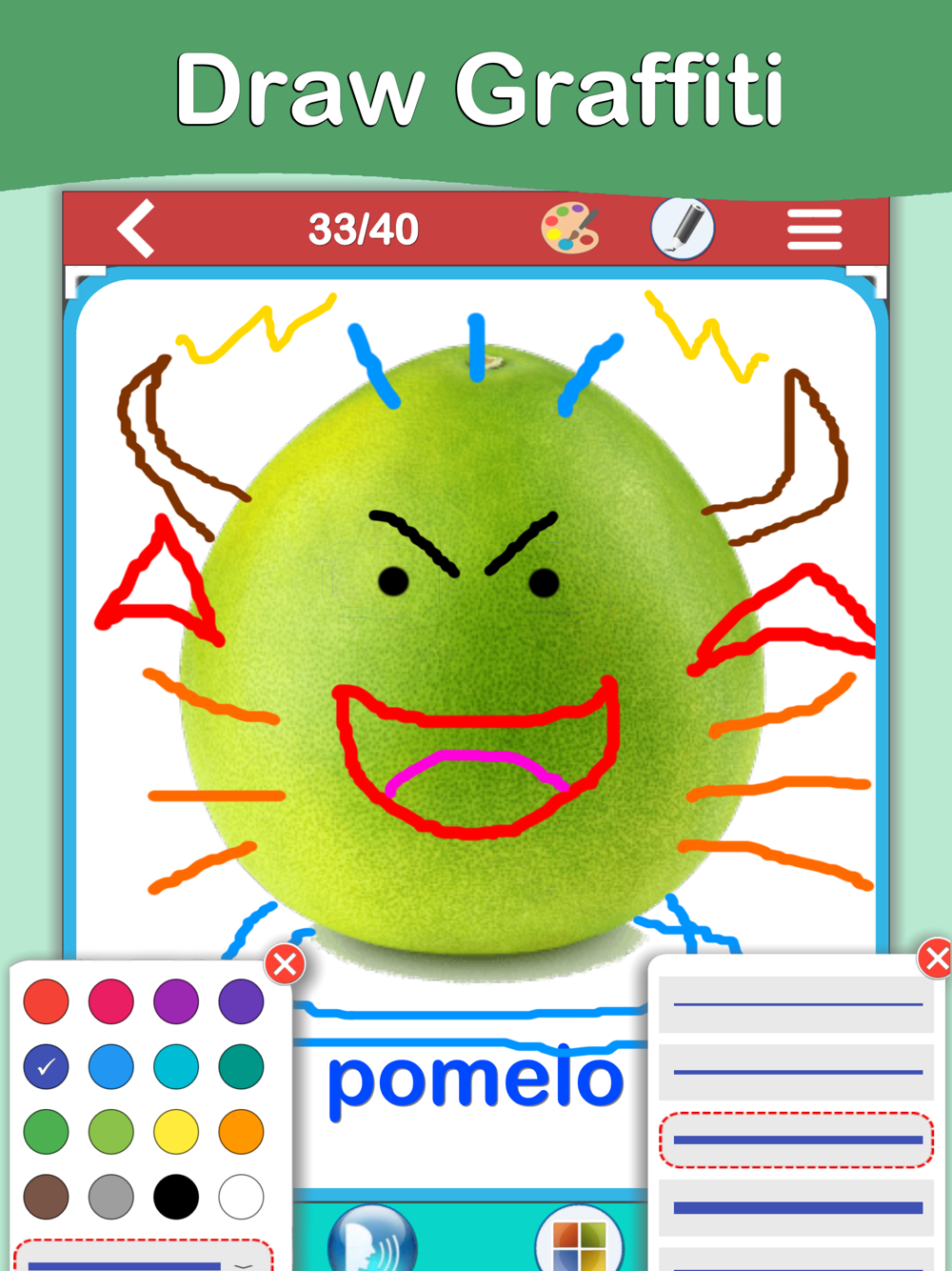 This app can help you to learn about 40 kind of fruits (ex: apple, pear, banana, strawberry ....).