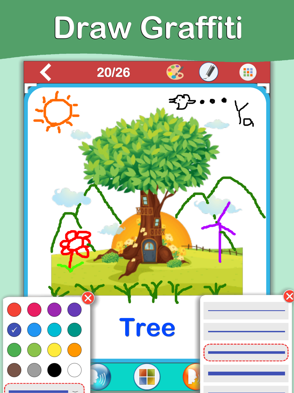 ABC Flashcards provides the best way to get started learning the alphabet, which contains a total of 26 letters of the alphabet, each word card are voice-enabled.