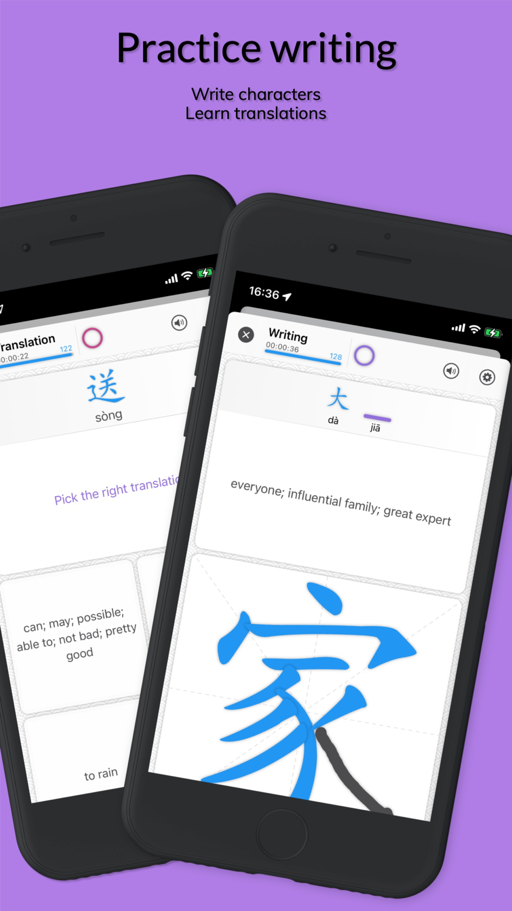 • Learn to write any Chinese character, stroke by stroke, until you master it.