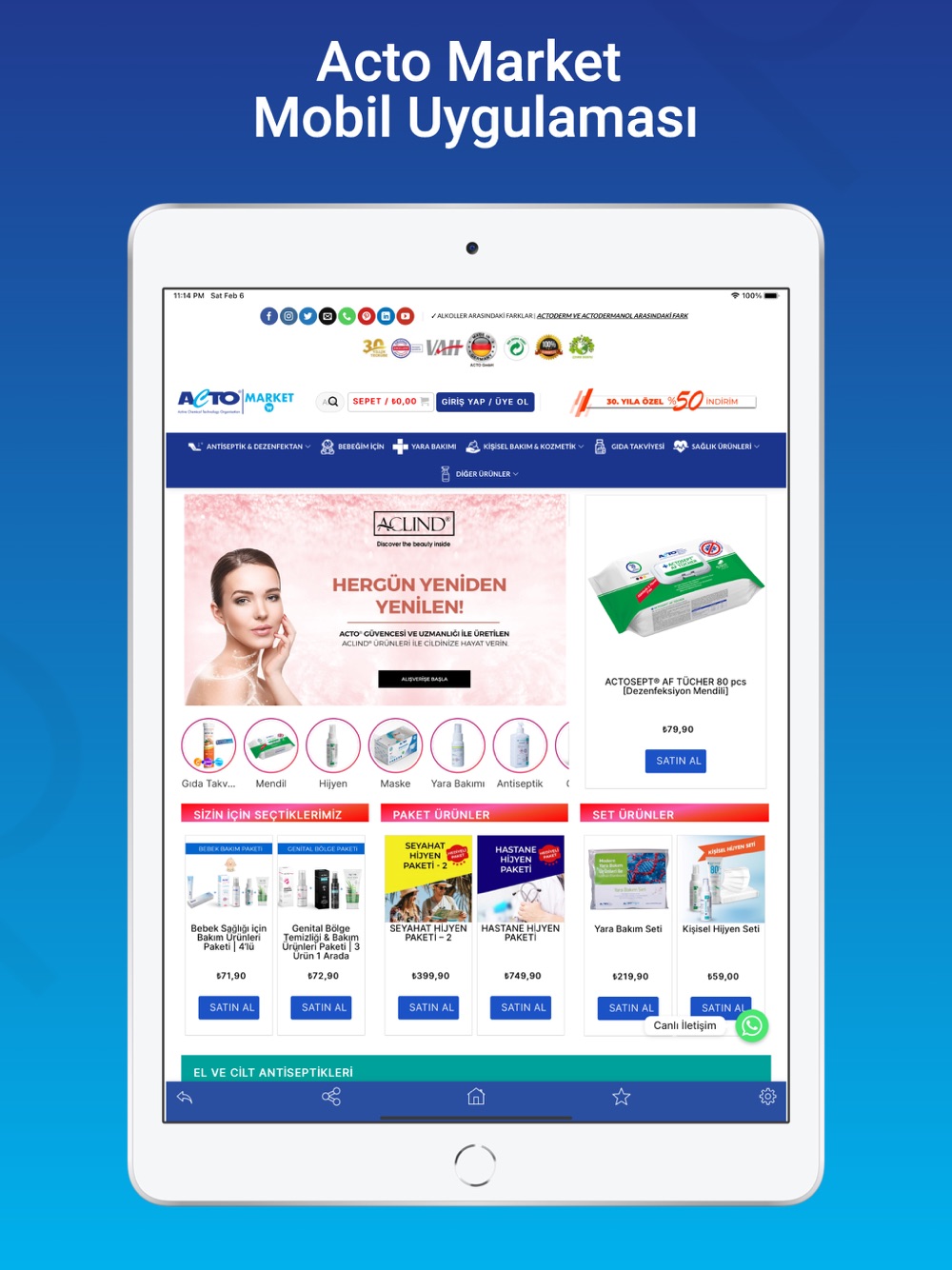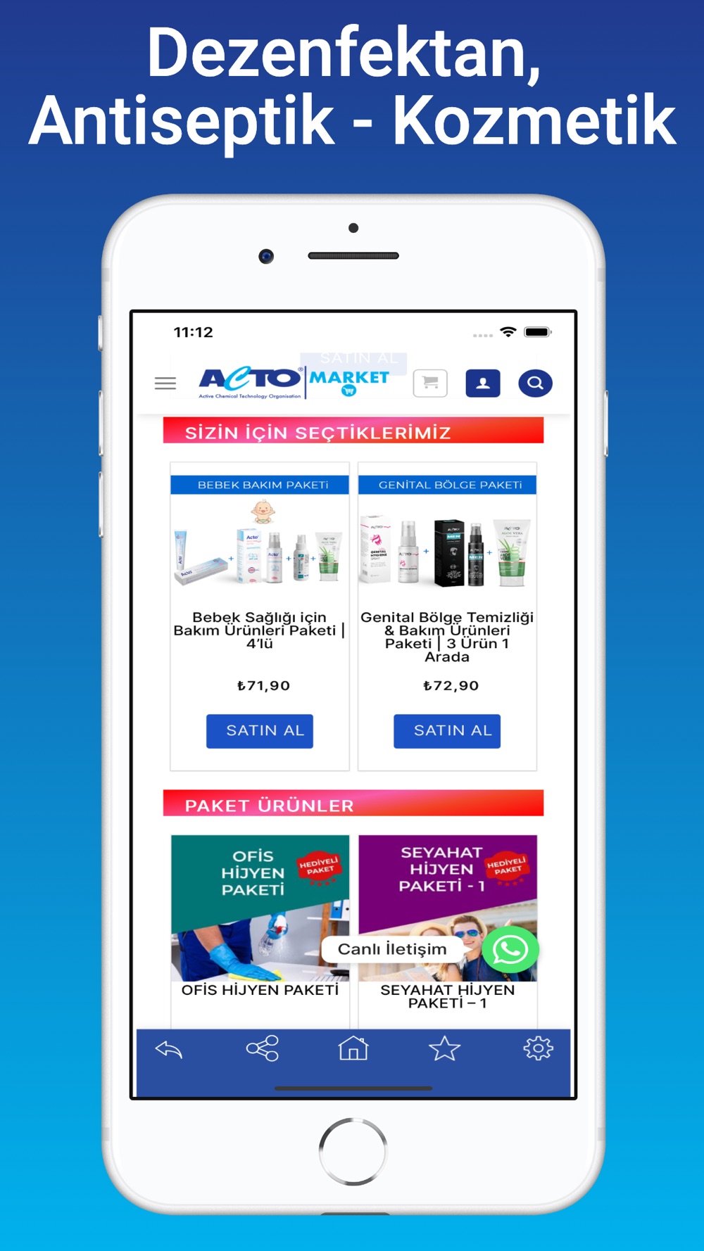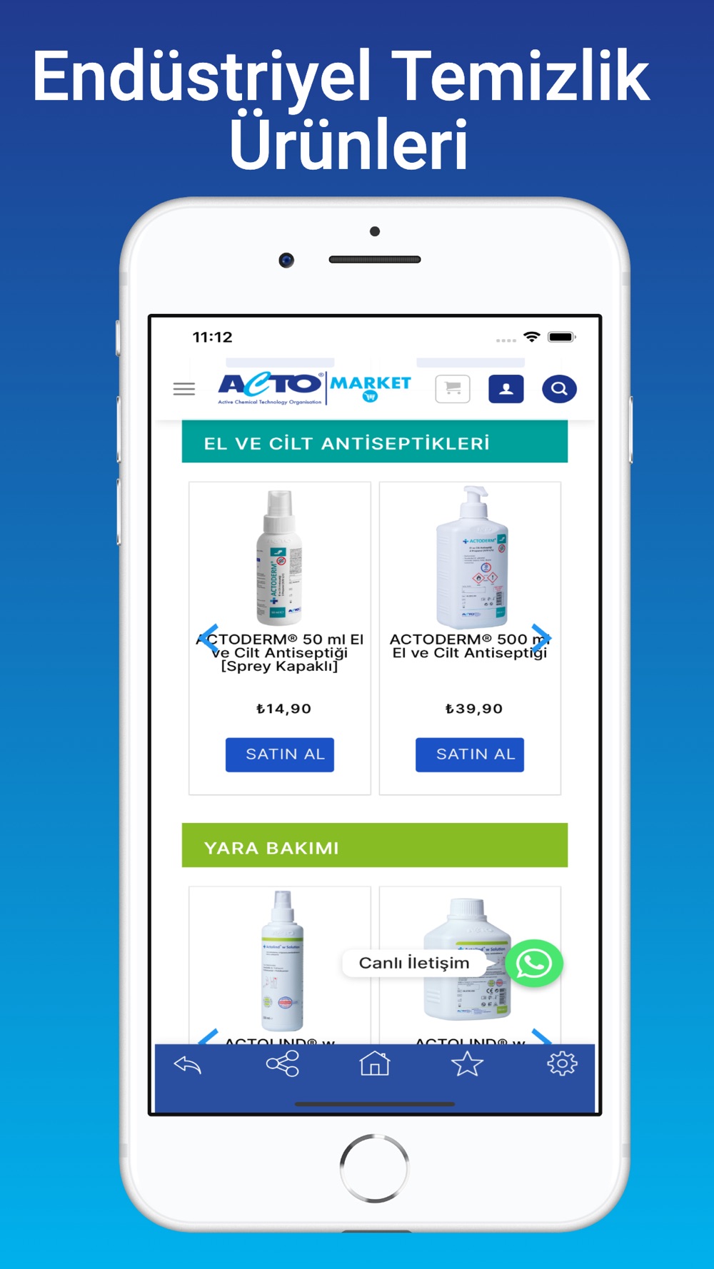 Uygulamamız ile ACTO® markalı dezenfektan, antiseptik, kozmetik, yara bakımı, kişisel hijyen ve endüstriyel temizlik ürünlerini kolayca satın alabilirsiniz.