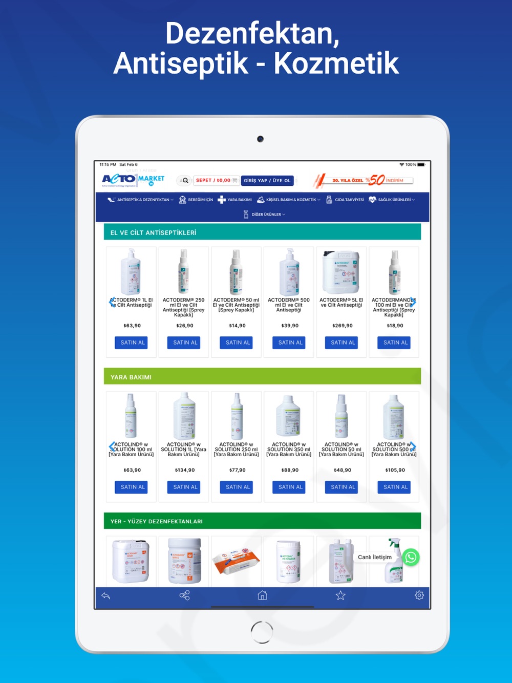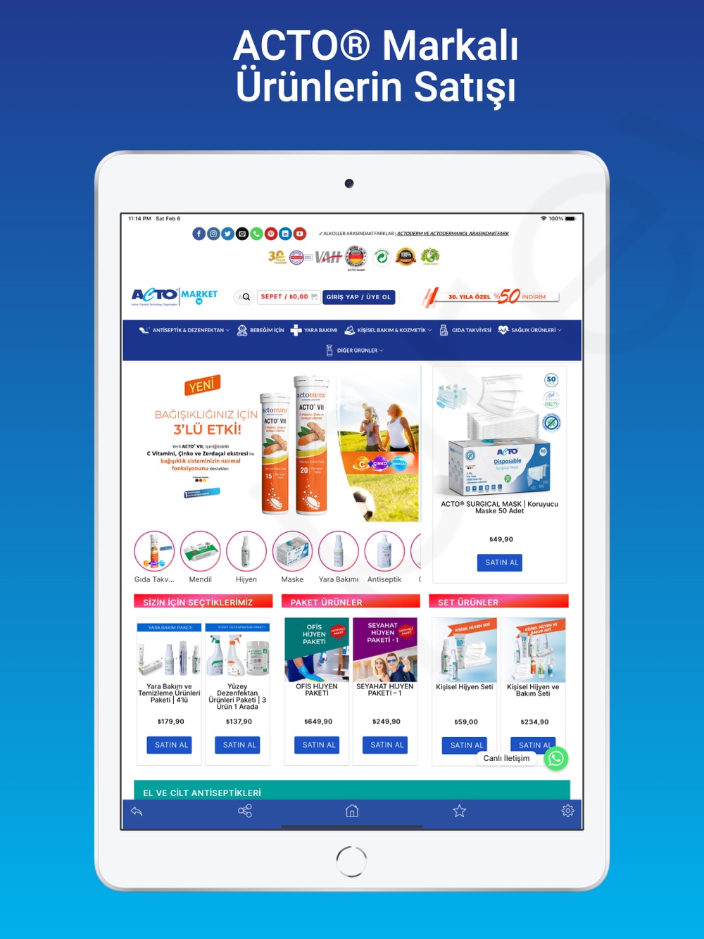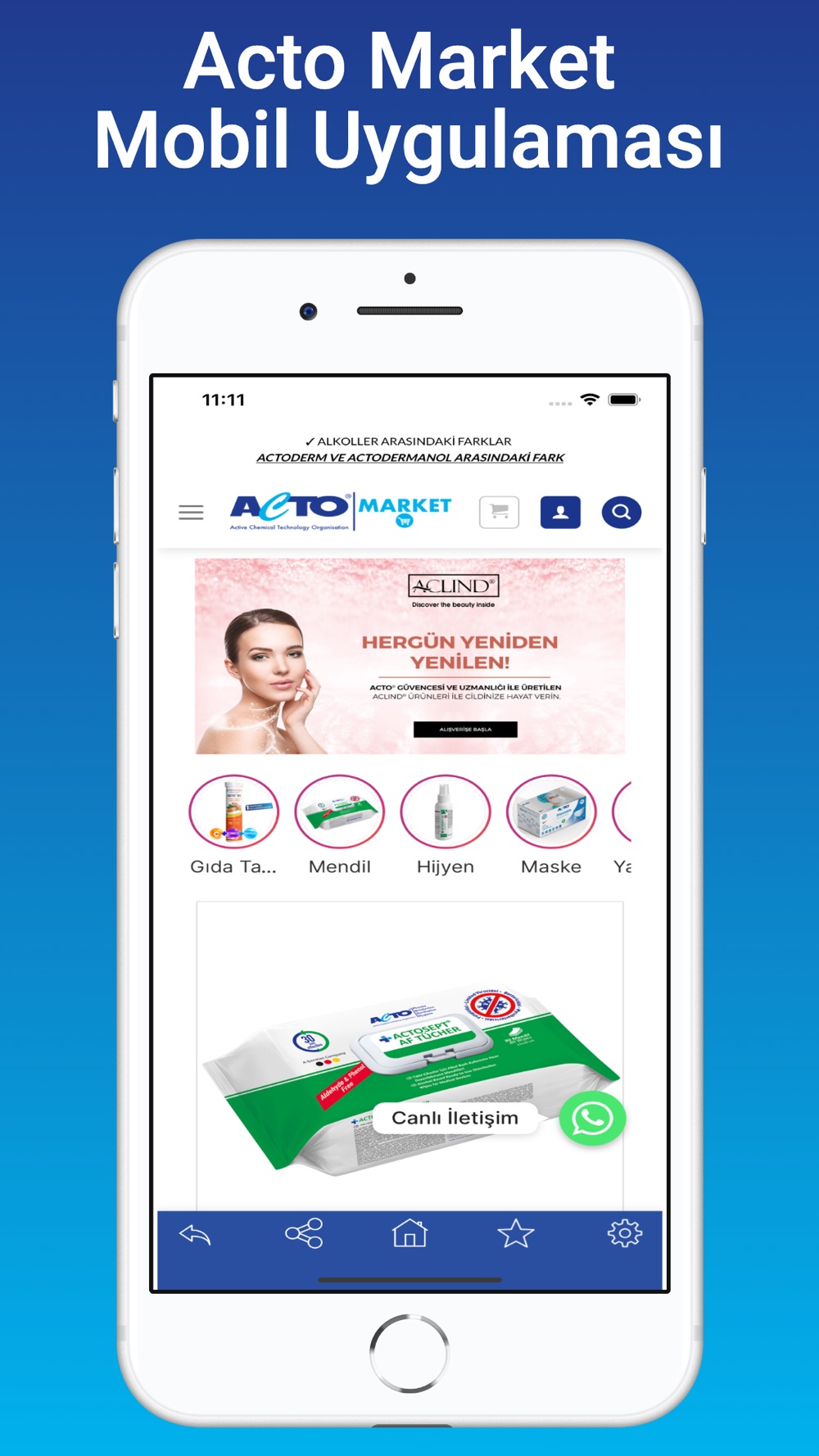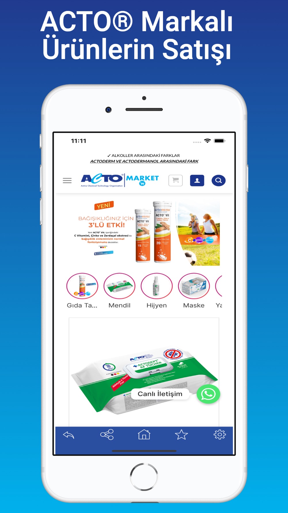 Uygulamamız ile ACTO® markalı dezenfektan, antiseptik, kozmetik, yara bakımı, kişisel hijyen ve endüstriyel temizlik ürünlerini kolayca satın alabilirsiniz.